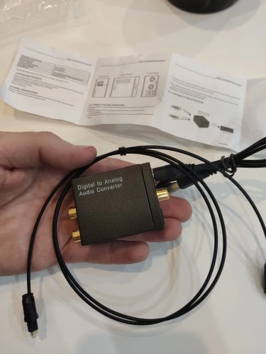 вот такой малыш. в деле не проверял, ибо в деревне подопытный телик и старая звуковая система которые хочу соединить. в комплекте провод питания на усб и проводок коротенький для оптопорта. инструкция имхо не нужна, тут и так вче понятно