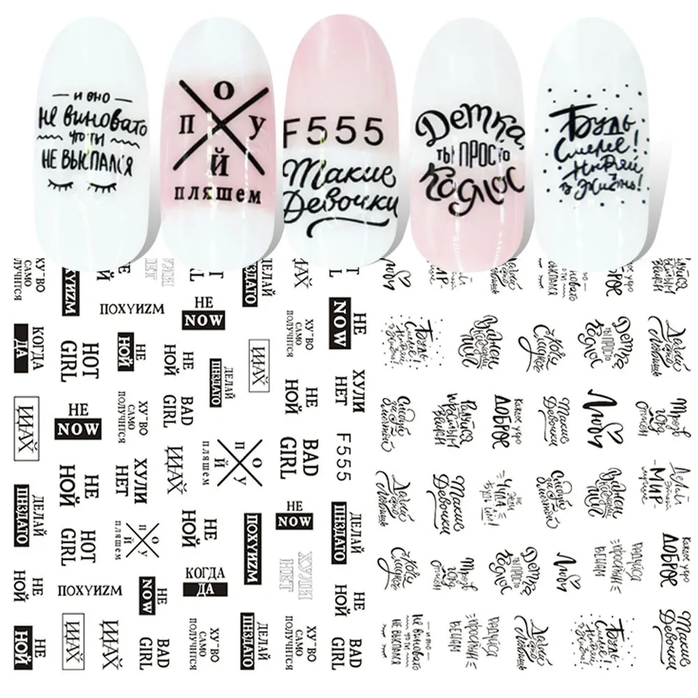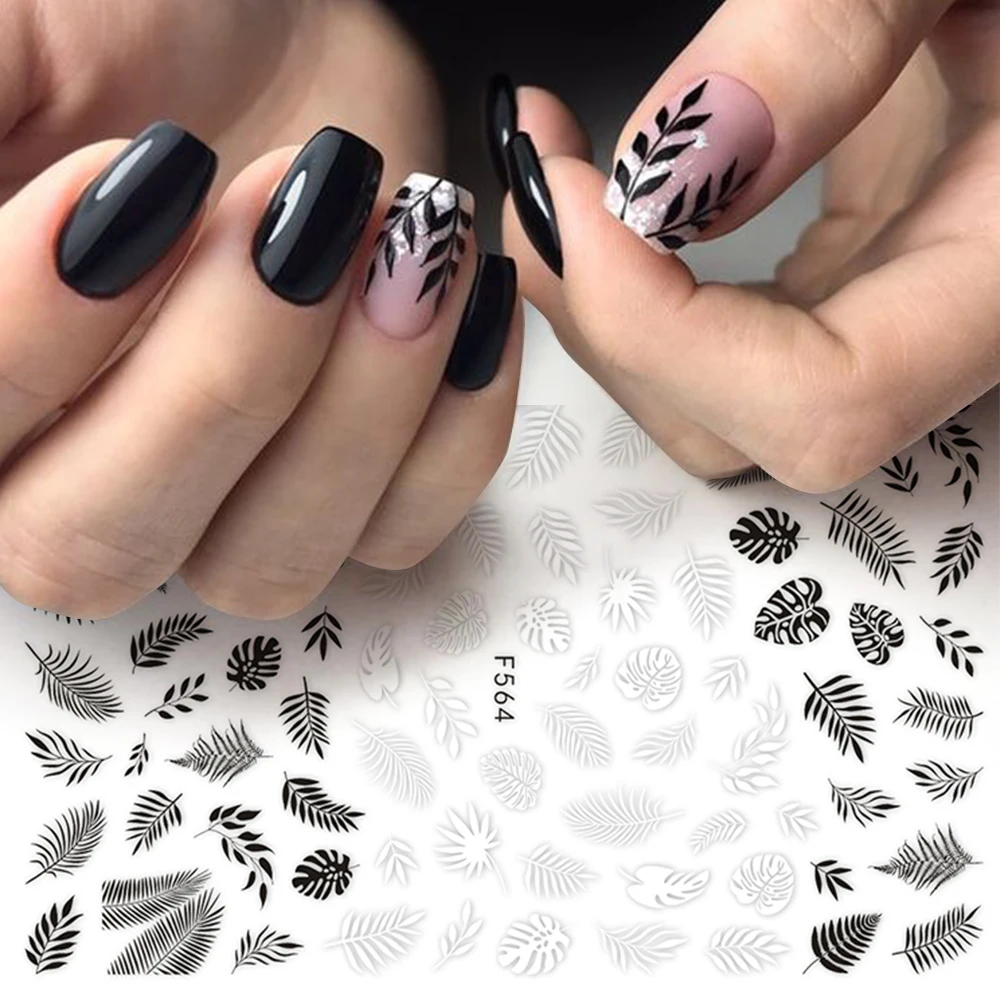 3D наклейки для ногтей, 1 шт., черные, белые, с листьями растений, цветами, наклейки для маникюра, LAF564-573