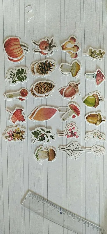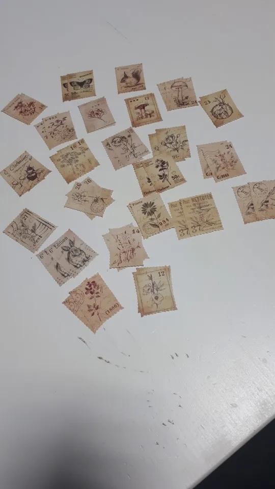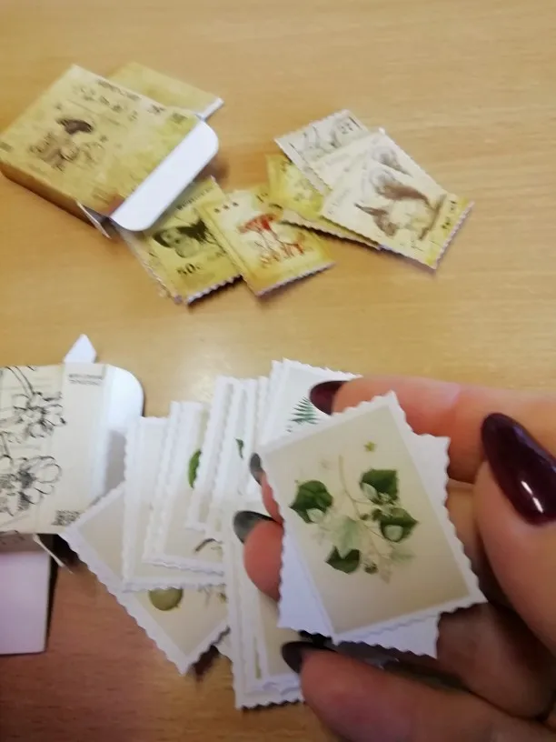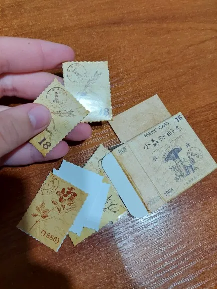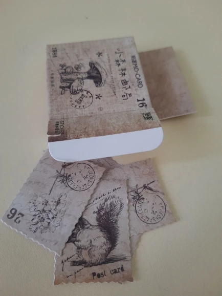 Милые наклейки, имитирующие ретро марки. Всего 46 штук, 23 изображения по 2 шт. Размер примерно 4×3см. Товаром и продавцом довольна.