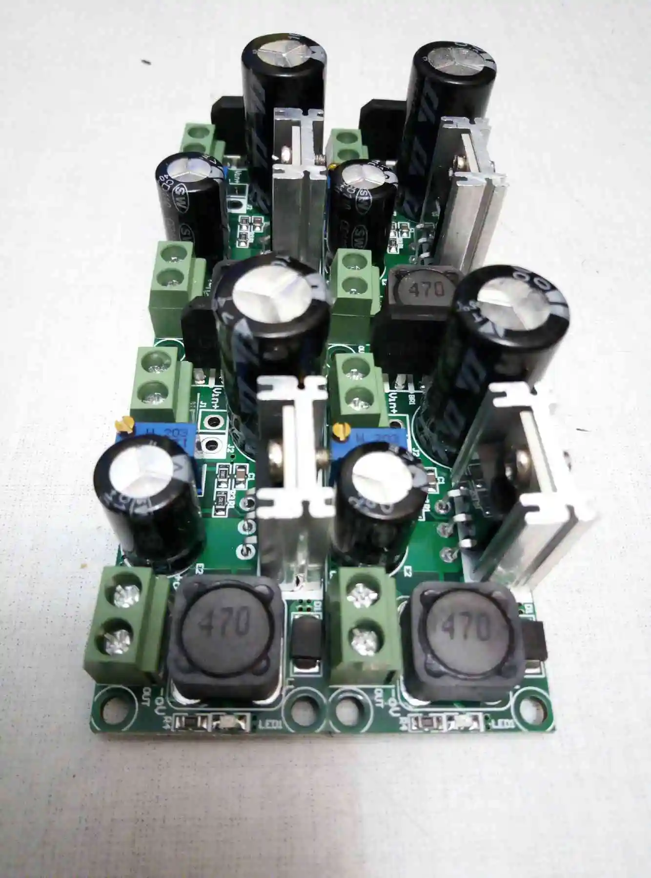 Не работает, но подстроечным резистором (синенькая фигня под шлицевую отвёртку) добился 10 вольт на приход 12 V.