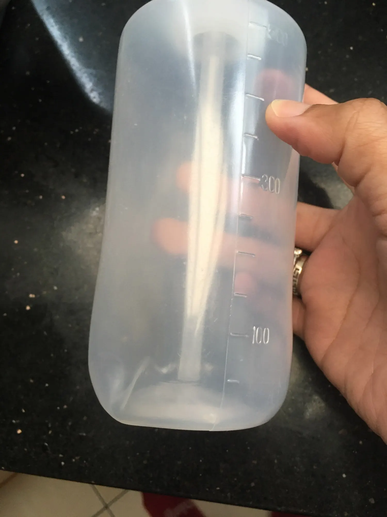 emballage a désiré car aucune protection, mais puisque c'est du plastique, ça va... juste une trace dû a un choc mais n'endommage pas l'utilisation du produit. graduation visible jusqu'à 500 ml.