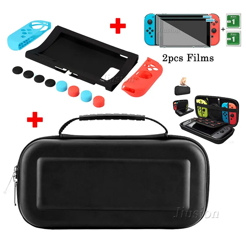 Жесткий чехол EVA с силиконовым чехлом, набор пленок из закаленного стекла для консолей NS, аксессуары для контроллеров