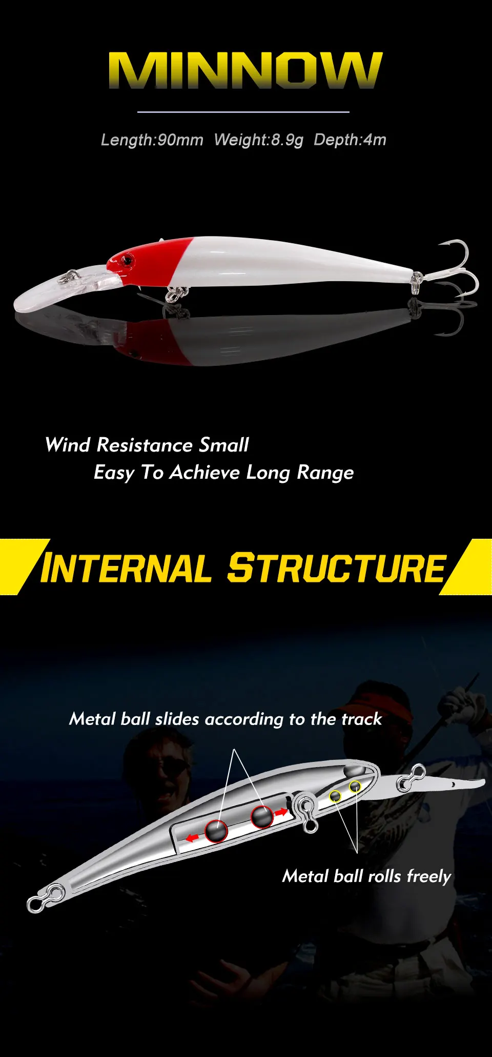 Приманка-воблер для рыбной ловли, 9 см, 8,9 г, 4 м, 1 шт.