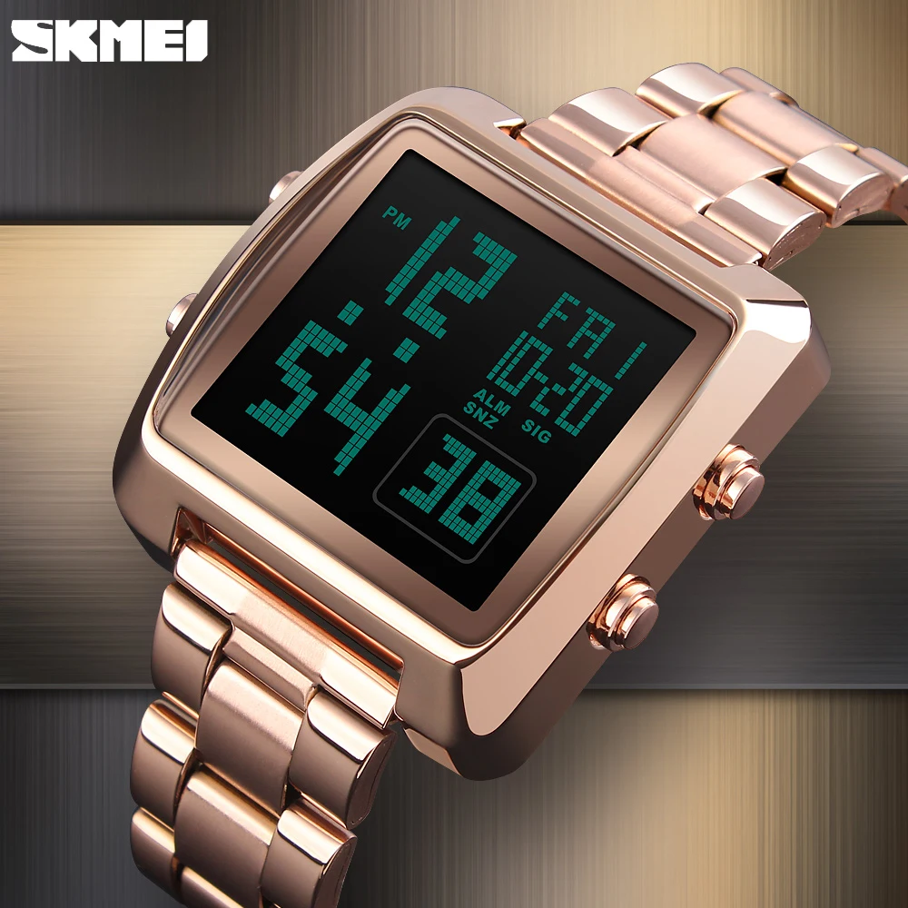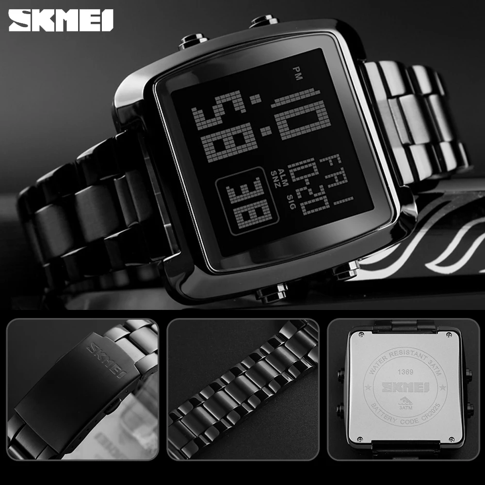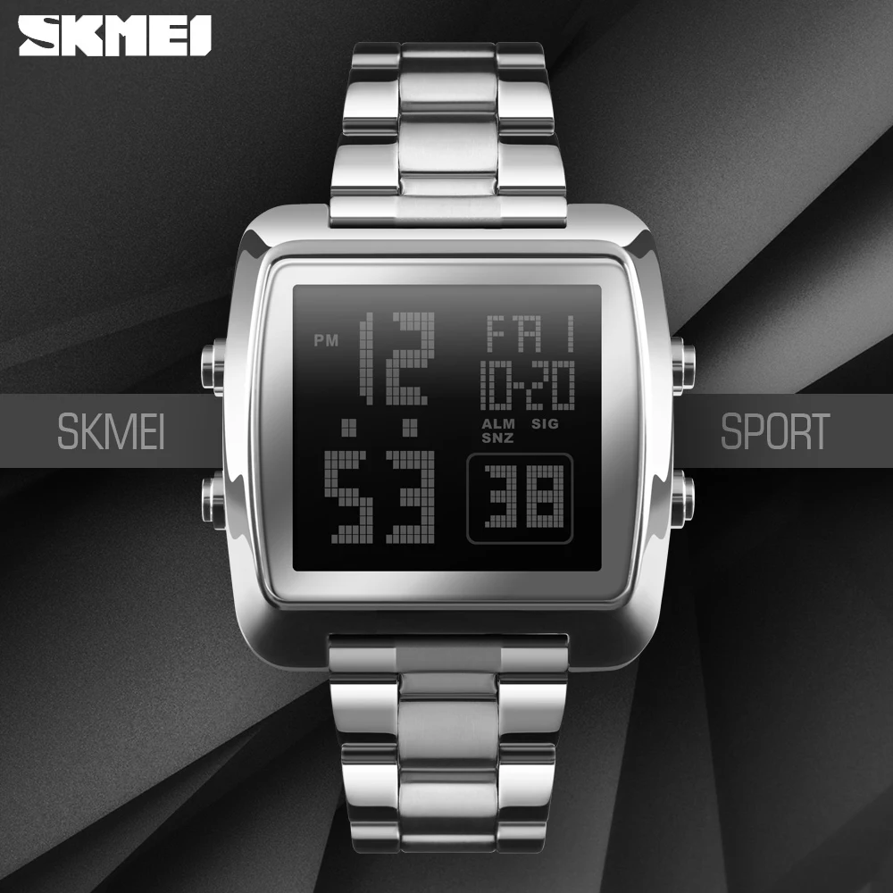 SKMEI фирменные Роскошные спортивные часы Chrono, светодиодный цифровой ремешок из нержавеющей стали, мужские часы, водонепроницаемые наручные часы, Relogio Masculino
