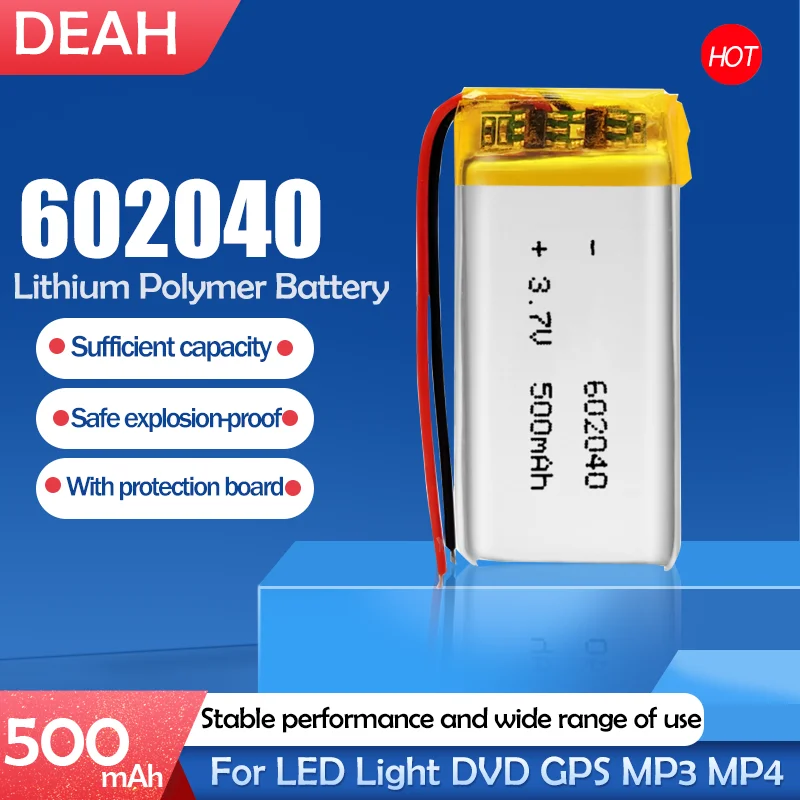 Аккумулятор 500 мА ч, 3,7 в, 602040, полимерный, литий-ионныйлитий-ионный аккумулятор для mp3, mp4, GPS, диктофона, резервного питания, ПК, умных часов