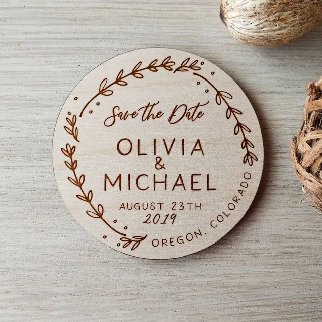 Деревенский цветочный деревянный Свадебный магнит для сохранения даты, деревянные центральные части для свадебного душа в стиле бохо под заказ, лазерная гравировка имени и даты