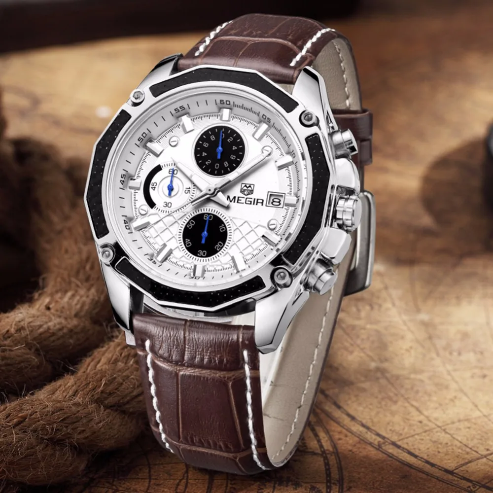 MEGIR часы Бизнес кварцевые мужские часы военные водонепроницаемые кожаные спортивные наручные часы хронограф мужские часы Relogio Masculino