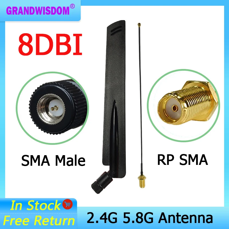 Двухдиапазонная Антенна GRANDWISDOM 1-2p 2,4g 5,8g, 8dbi sma, мужская, wlan, Wi-Fi, роутер с разъемом tp, антенна IPX ipex 1 SMA, разъем мама