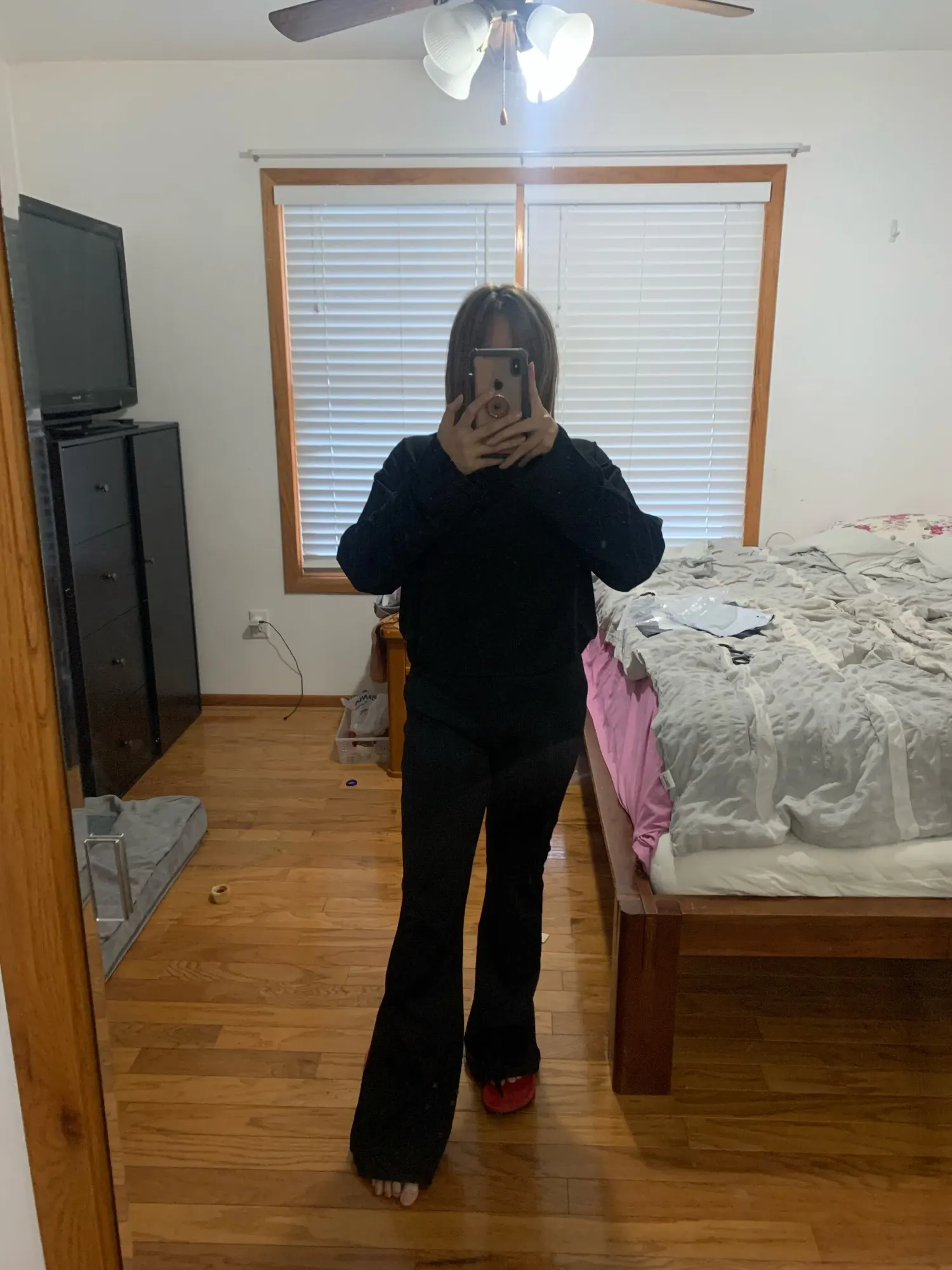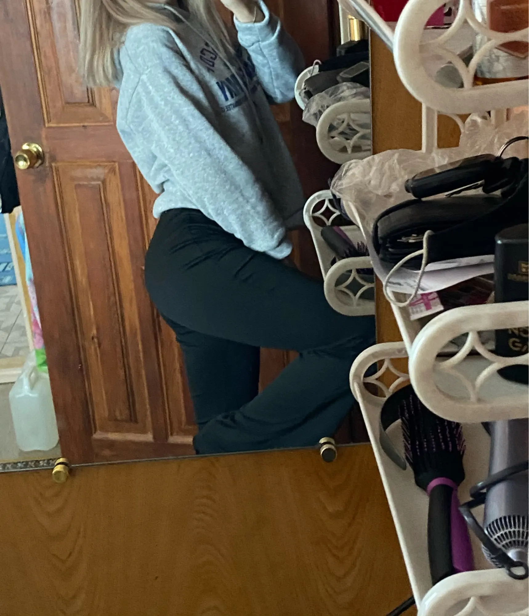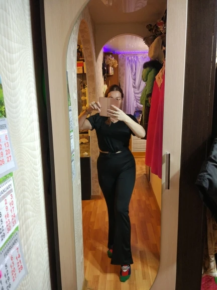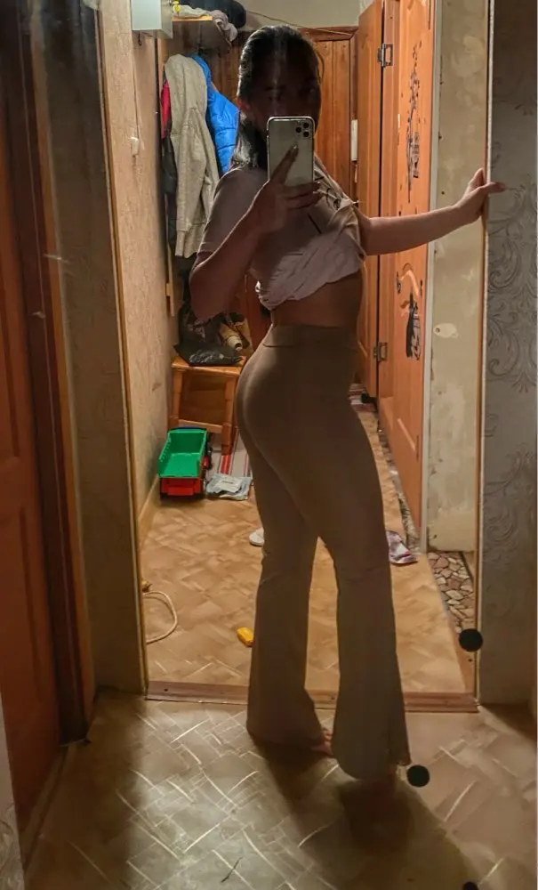 Штаны норм, но оказались большие XL. У меня О.Б 100, О.Т 75. Заказала L, но родавец уверил в большем размере. В общем утонула. Ткань как лосины, пузо сильно видно, на идеальную фигурку. Пришло быстро, сшито хорошо без ниток. На 170 длинна хорошо. Что очень редко.