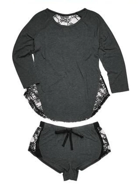 Новый сексуальный женский домашний костюм, хлопковое кружевное ночное белье, пижамный комплект, домашняя одежда, женские повседневные комплекты одежды