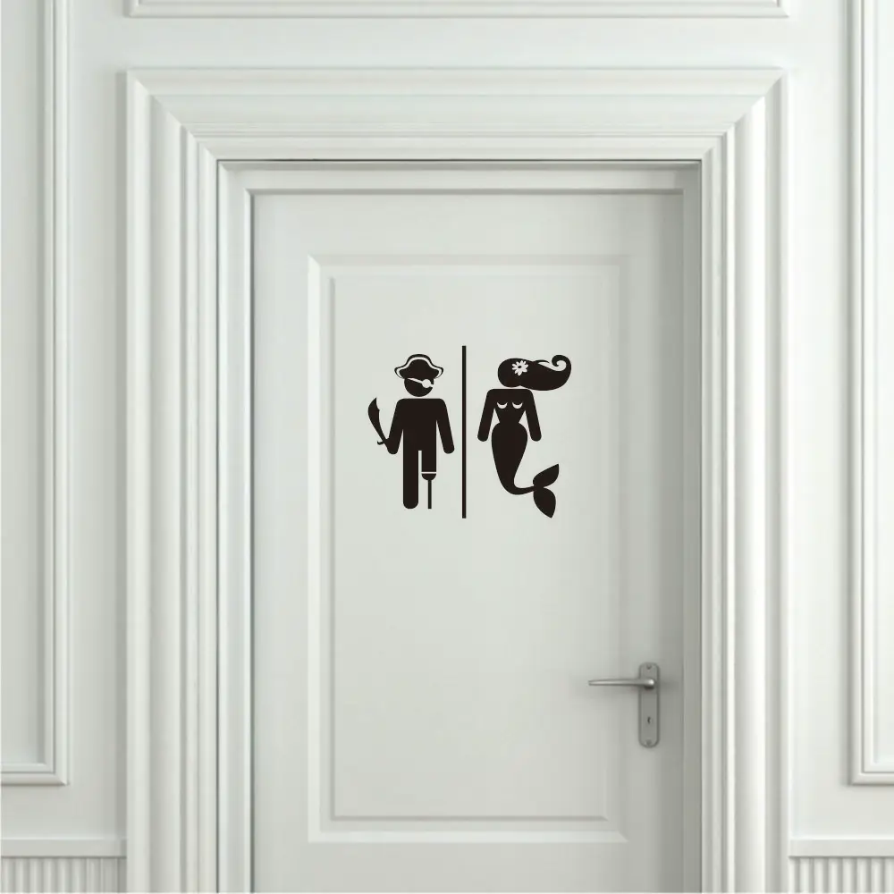 Настенные наклейки с пиратским рисунком русалки, наклейки на двери, туалеты, двери, домашние комнаты, знак, настенная наклейка, художественный дизайн, виниловая настенная живопись M115