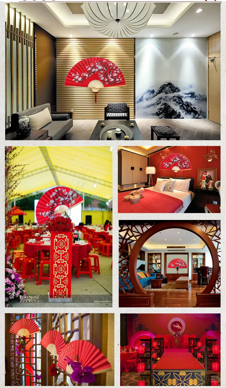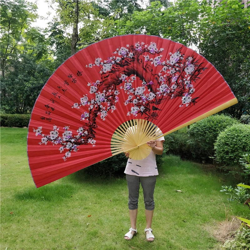 Праздничный веер в китайском стиле с красной сливой, классическая декоративная мебель, большой складной веер, реквизит для выступлений Abanicos