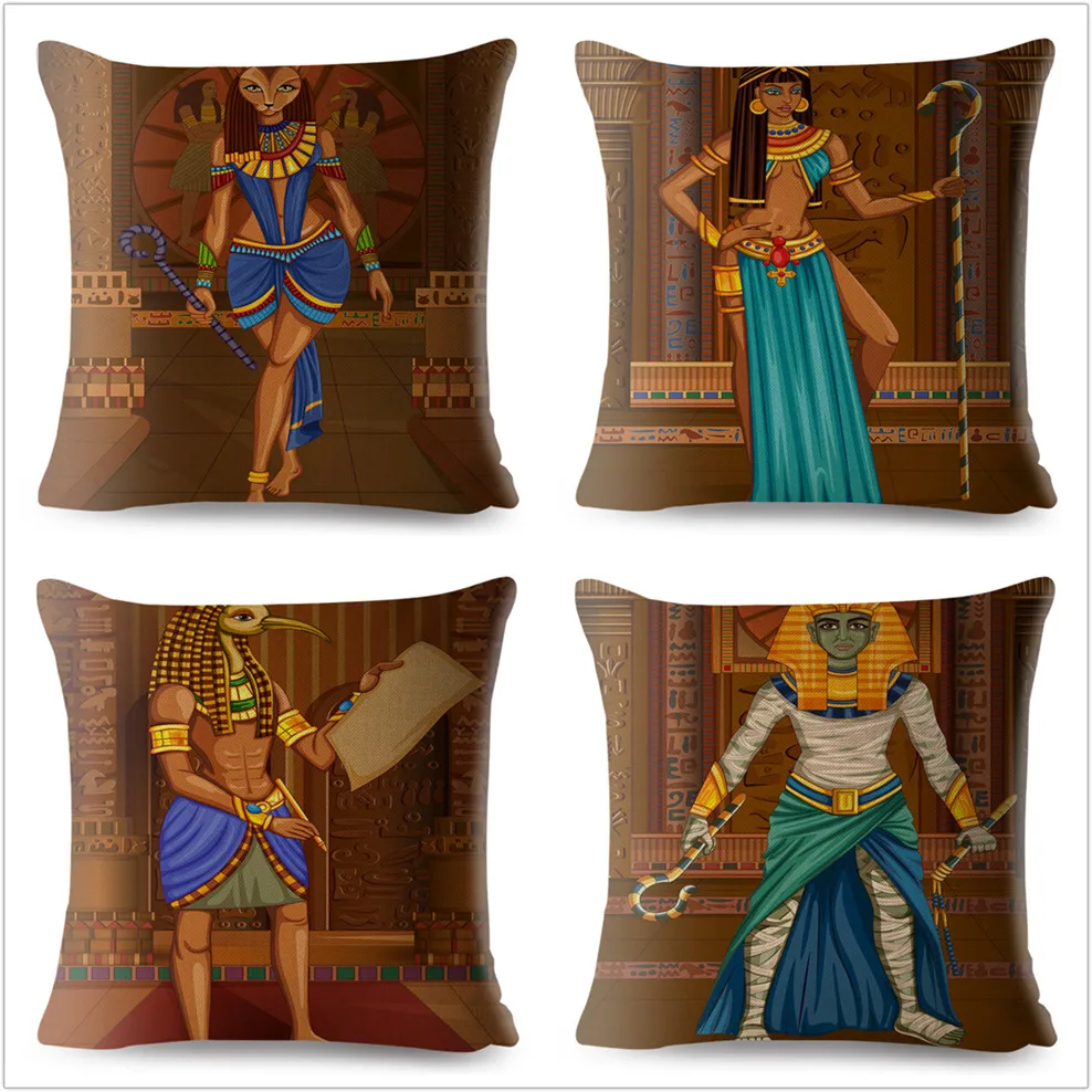 Античная египетская Клеопатра с тотемным принтом, наволочка 45*45, Квадратные наволочки, бежевые льняные наволочки для дивана наволочка для домашнего декора