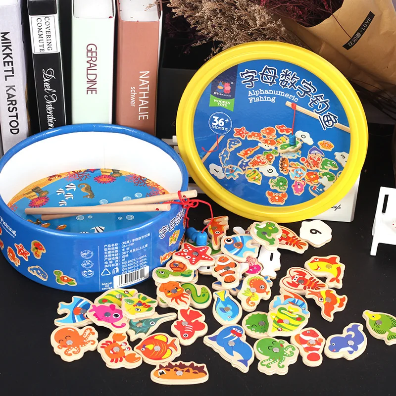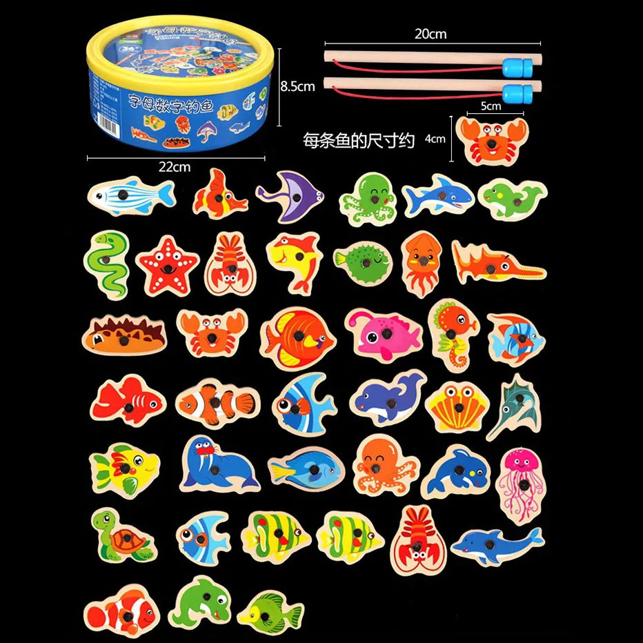 Игрушка рыболовная деревянная, 41 шт., магнитная, с цифровым алфавитом