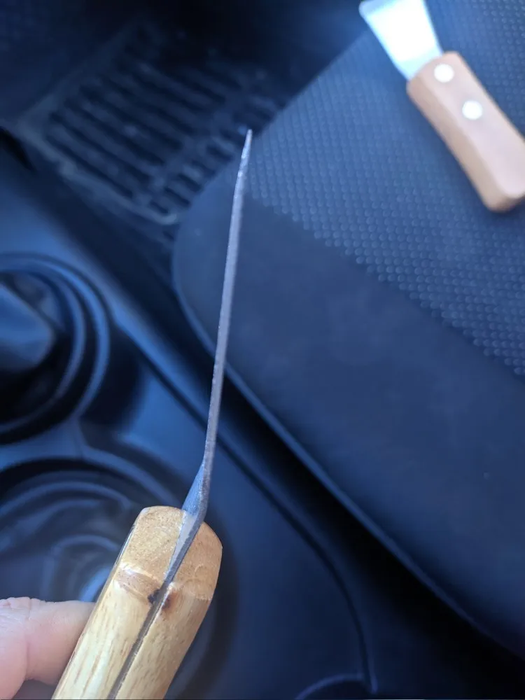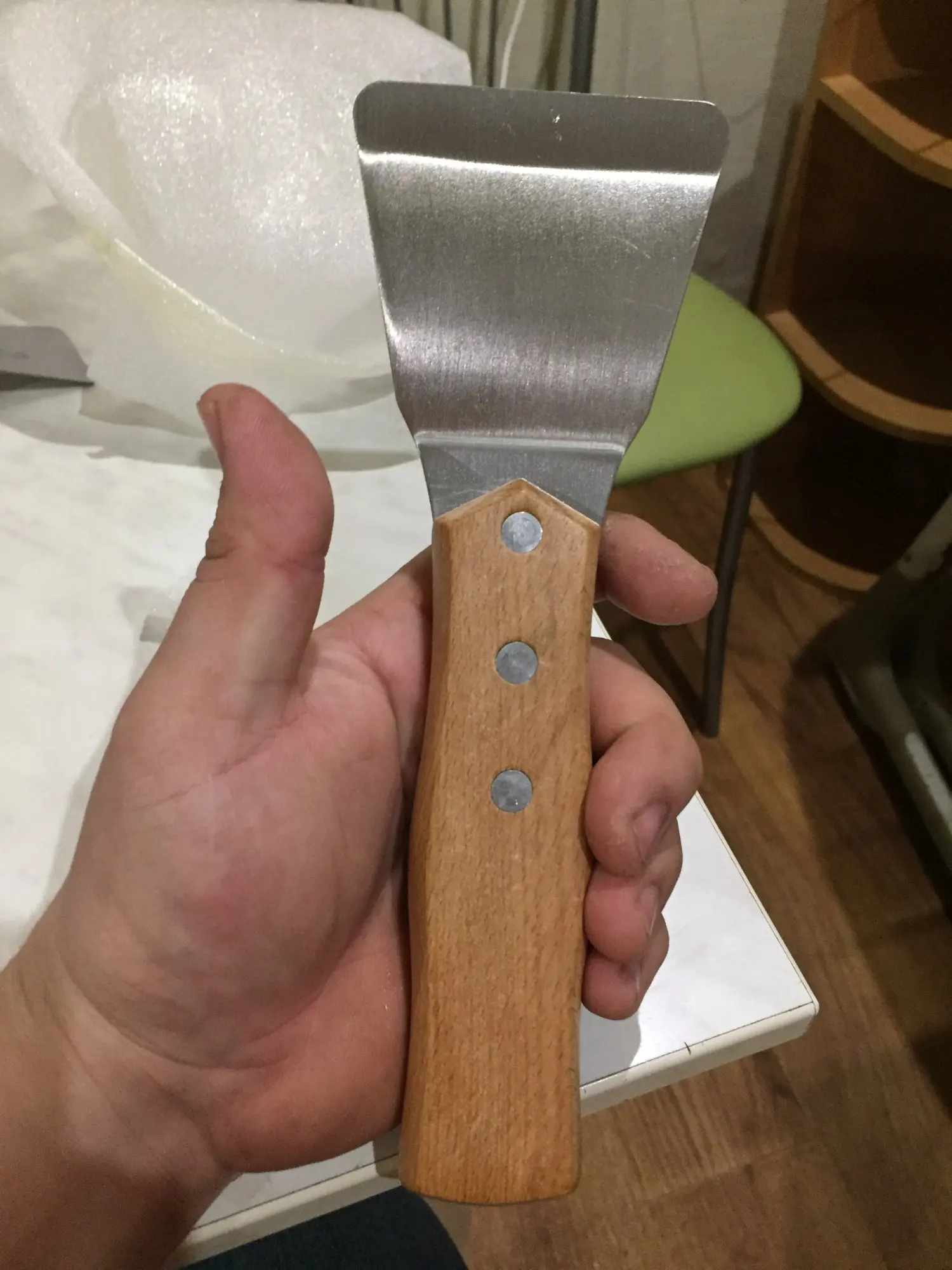 Нет. Это не шпатель. Это прочная лопатка. Из утолщенного металла. Никаких люфтов. Всё сглажено, заточено как надо. Супер.