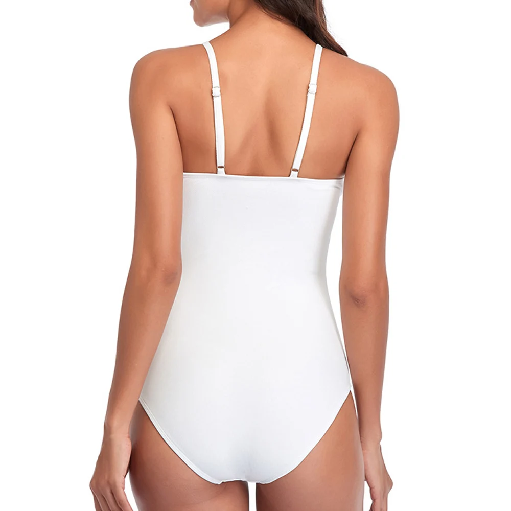 2021 белый слитный купальный костюм, женская одежда для плавания, монокини с глубоким V-образным вырезом, боди с открытой спиной, купальный костюм, пляжная одежда, купальный костюм с высоким вырезом