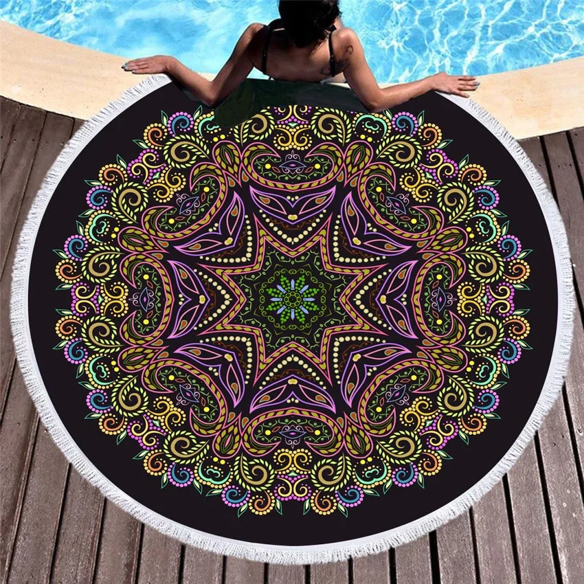 Круглое пляжное полотенце с геометрическим узором, плотное банное полотенце для душа 150 см, круг пляжа, для плавания, йоги, накидка, салфетка для пляжа