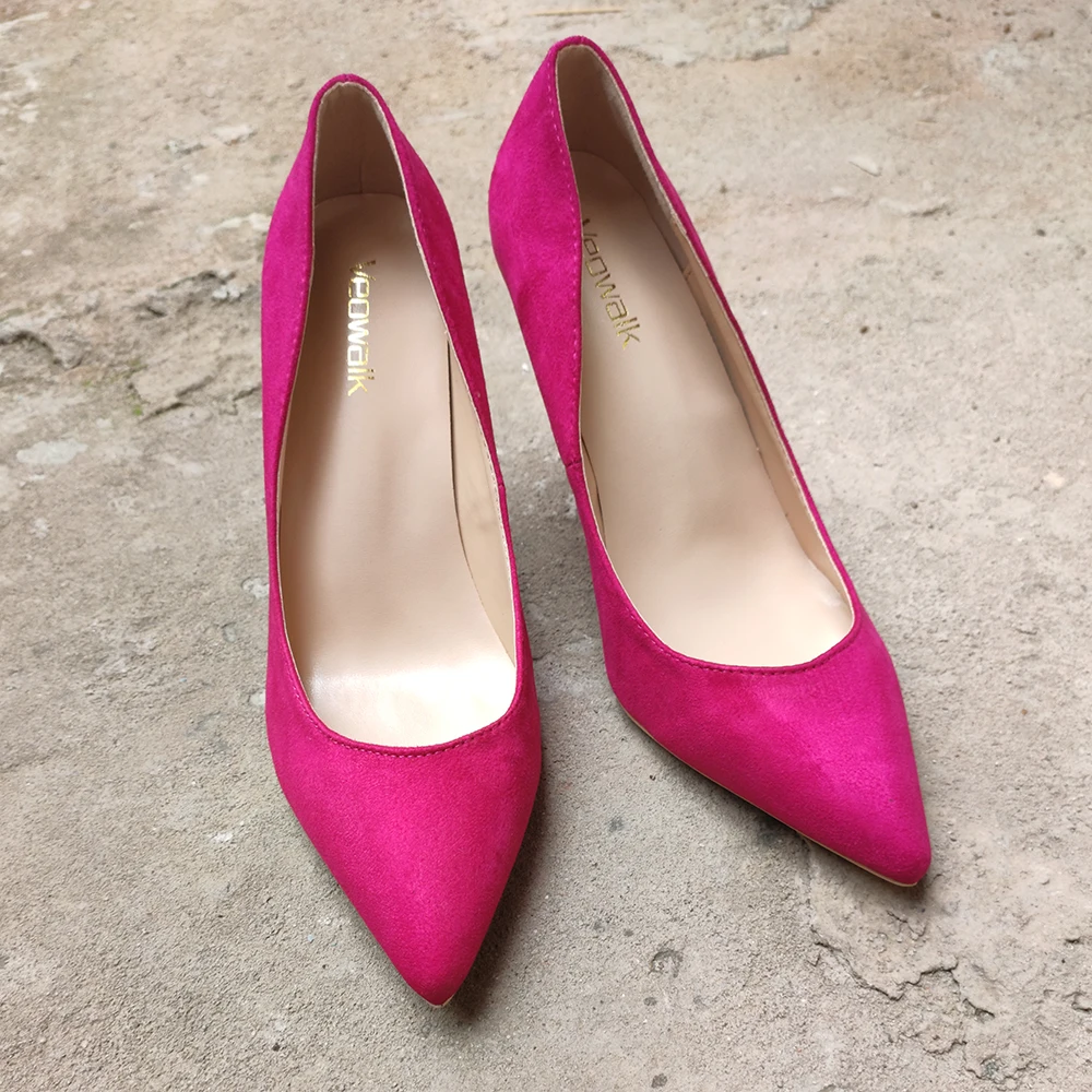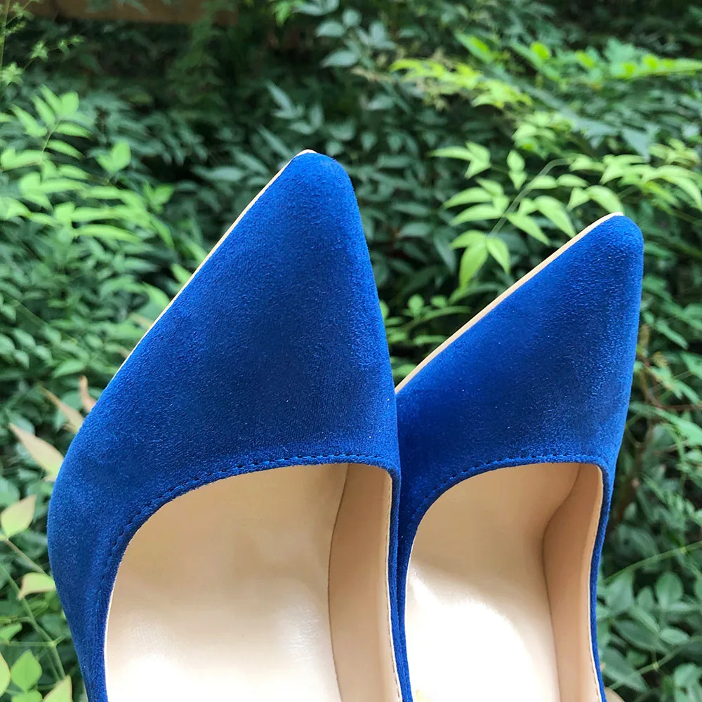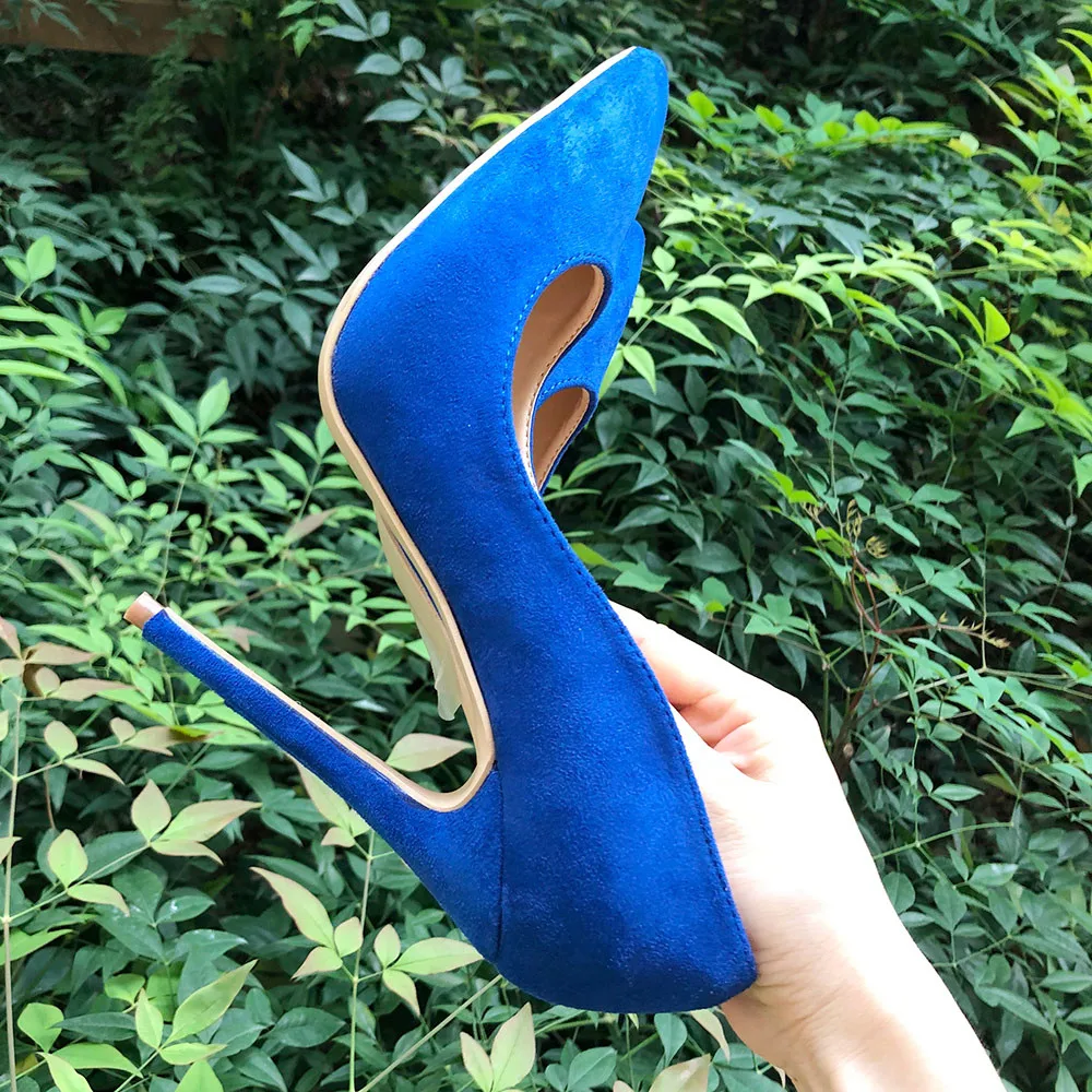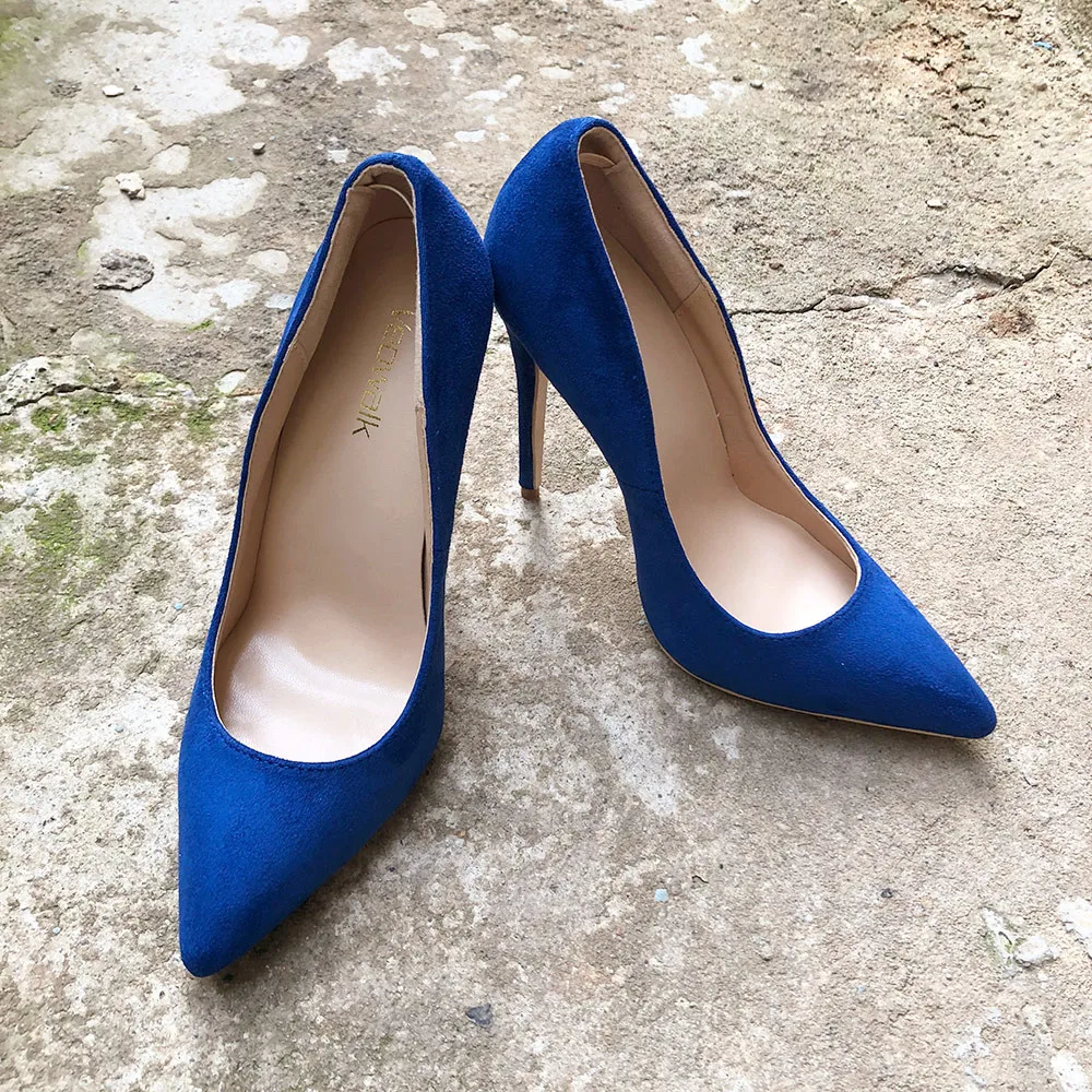 Женские Классические замшевые туфли Veowalk, синие элегантные вечерние туфли-лодочки на высоком каблуке, с острым носком, без застежки
