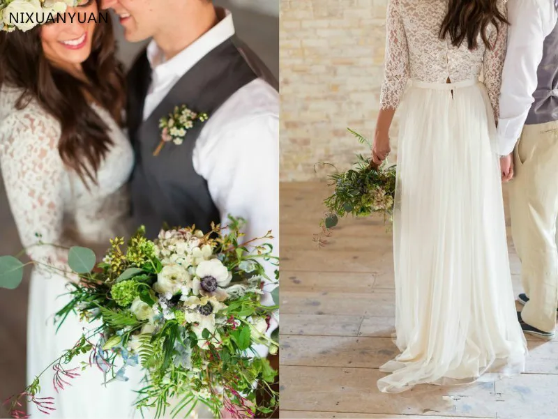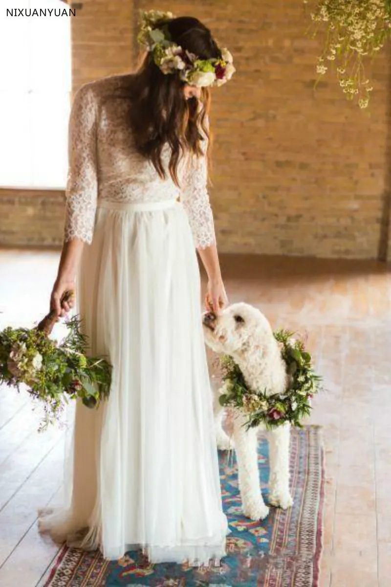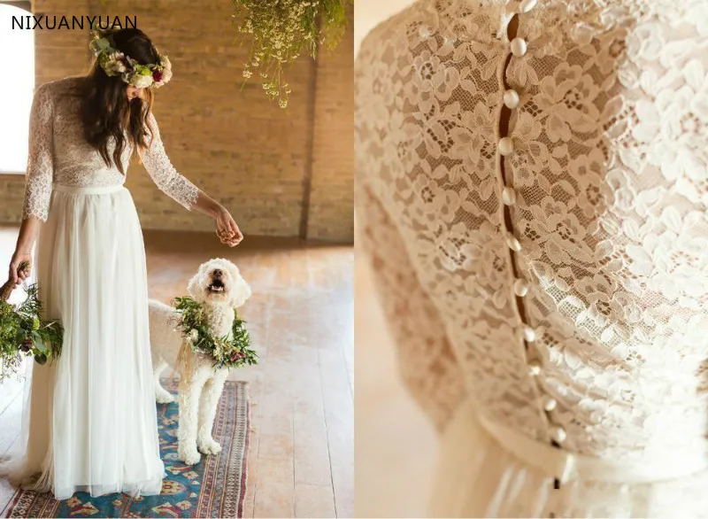 2021 богемное платье, винтажные кружевные пляжные свадебные платья в стиле бохо с длинными рукавами и пуговицами сзади, недорогое свадебное платье, свадебные платья