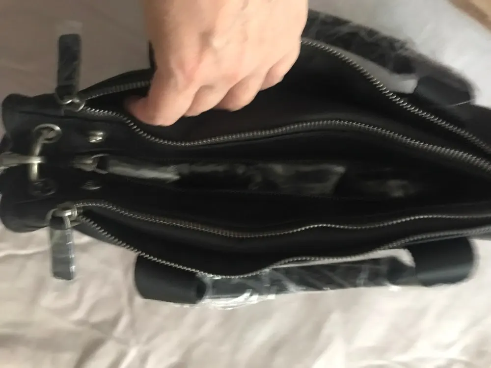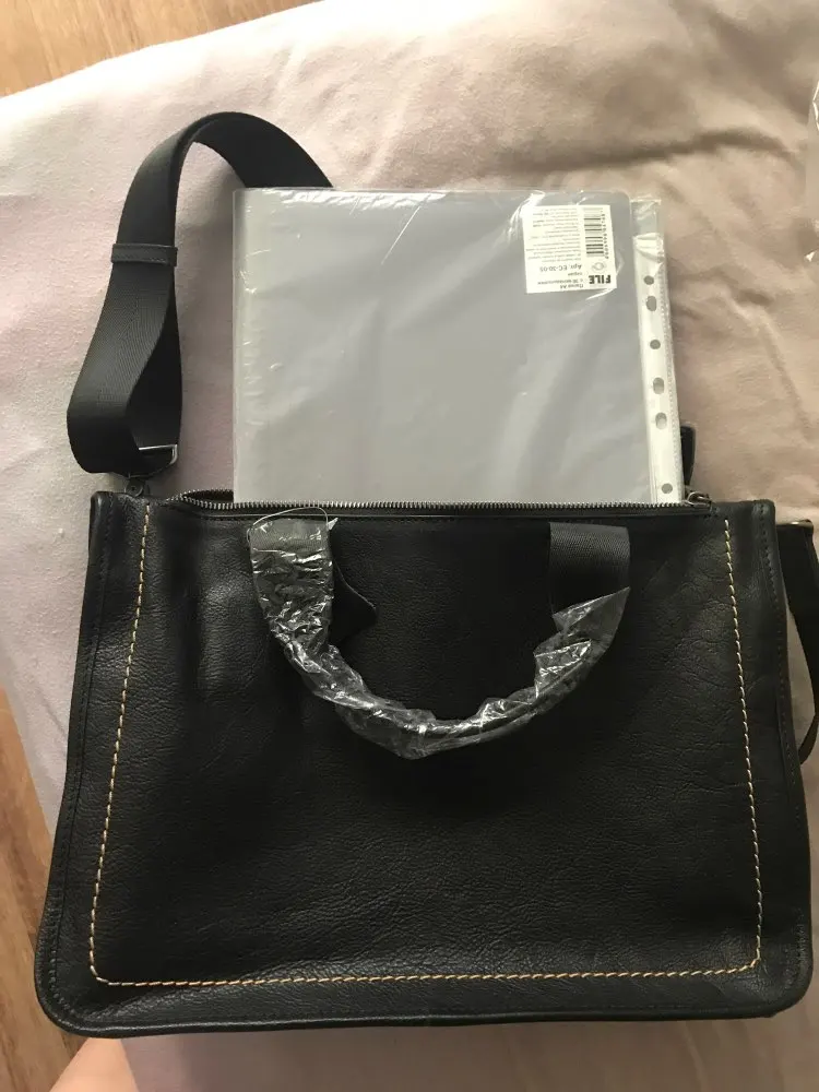 Очень большие сомнения в том, что это кожа. Доставка с курьером через 2 недели. Выглядет гораздо меньше, чем на фото продавца, молнии не удобные при использовании. Папка с бумагами А 4 не входит, максимум тетрадка. Брала на подарок мужу. Ему не понравилось. Сожалею о покупке