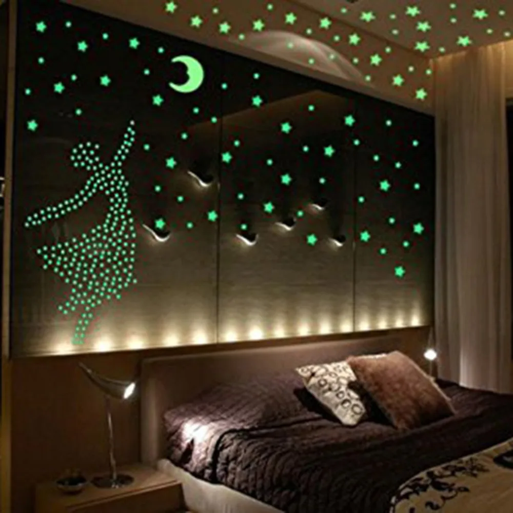 200 шт. Светящиеся Настенные наклейки со звездой и Луной для детских комнат, декор для детской спальни, супер яркий потолок, светящийся DIY