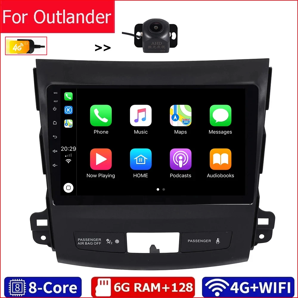 Автомобильный мультимедийный плеер, головное устройство Android 10,0 магнитола для Mitsubishi Outlander 2 3 XL с радио Gps 2Din Carplay Авто Wifi + 4G сеть+Восьмиядерный процессор+яндекс+navitel карта+Верхняя 8 ГБ RAM