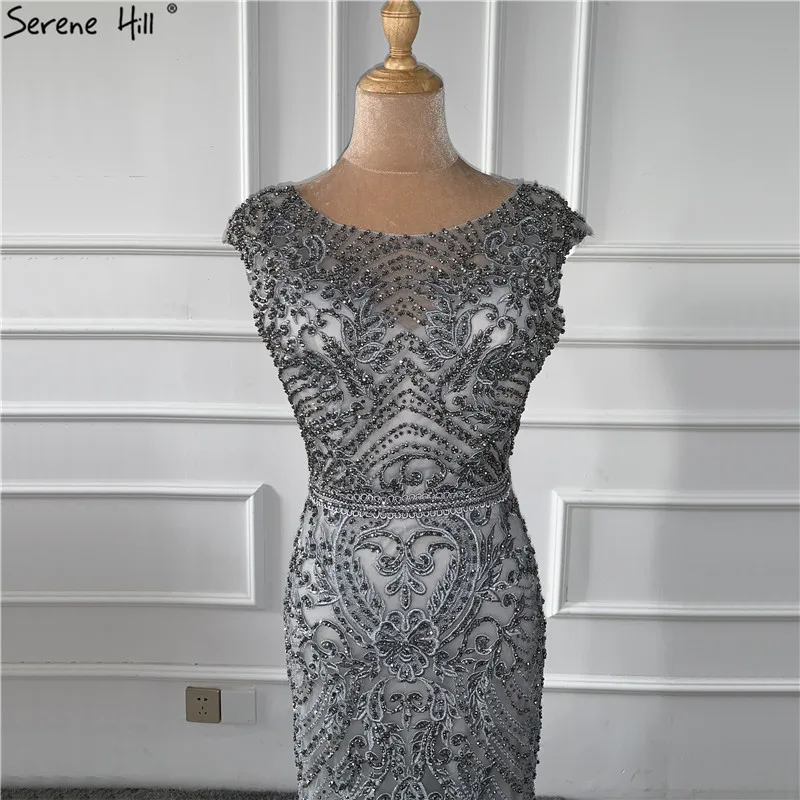 Платья для выпускного вечера из тюля, серые, с кристаллами из Дубая, последний дизайн 2020, платье русалки без рукавов, реальное фото, BLA60980