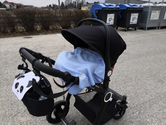 Компактно складывается, хорошо для прогулочных колясок с маленьким капюшоном