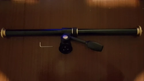 Доставка - 25 дней. Трек отслеживался. Кронштейн пришёл упакованный в картонную коробку (немного помялась при транспортировке). Сам кронштейн целый. Кронштейн легкий и крепкий, изготовлен из металлического сплава. Внимание, необходим переходник для крепления камеры или штативную голову с подходящей резьбой. Полнокадровую зеркалку держит хорошо. В целом, отличный кронштейн для съёмки с разных ракурсов. Понравился. Спасибо!