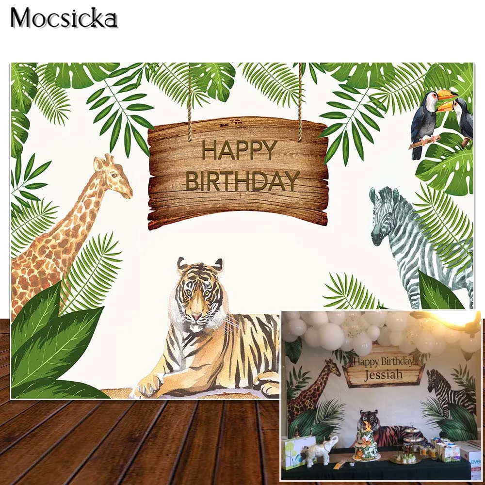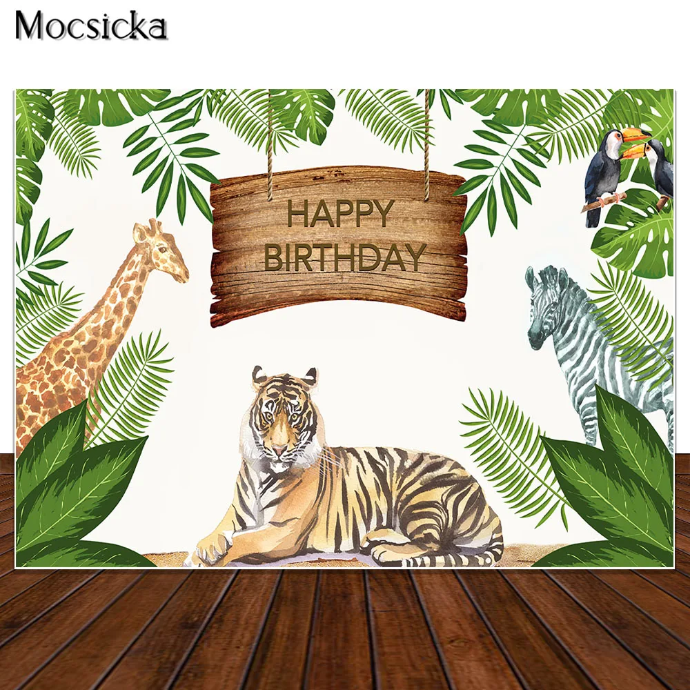 Сафари День Рождения декорации Король джунглей фотографии фон Тигр жираф зебра джунгли день рождения