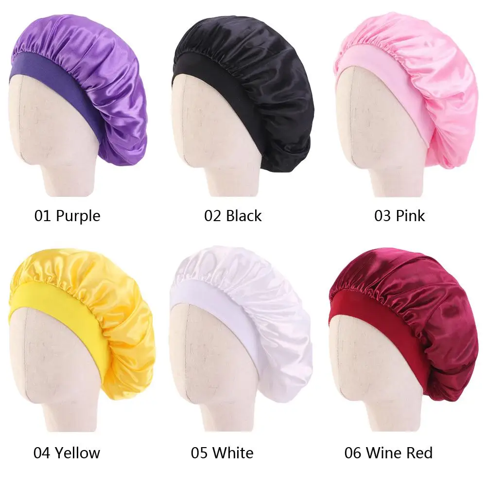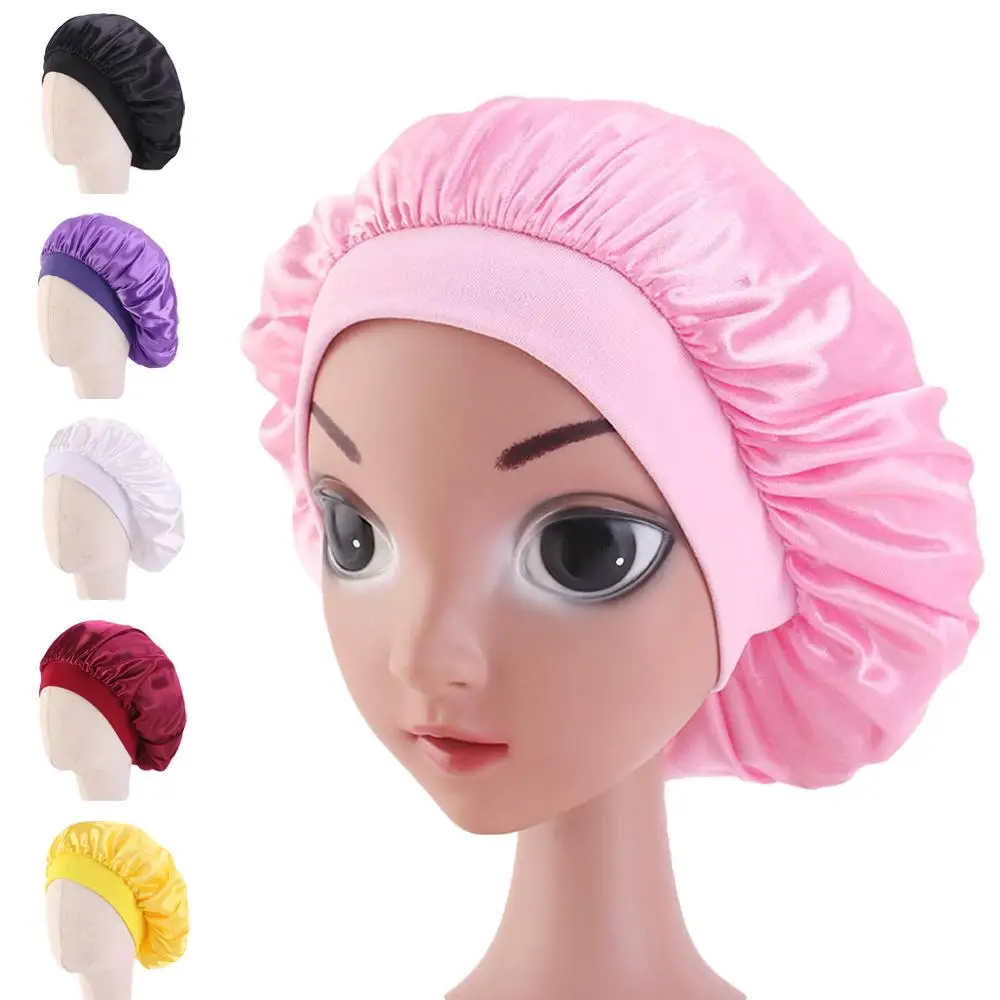 Детская Атласная шапочка, однотонная Шапка-тюрбан для девочек, широкий эластичный ремешок, однотонный, для ночного сна, модные шапочки