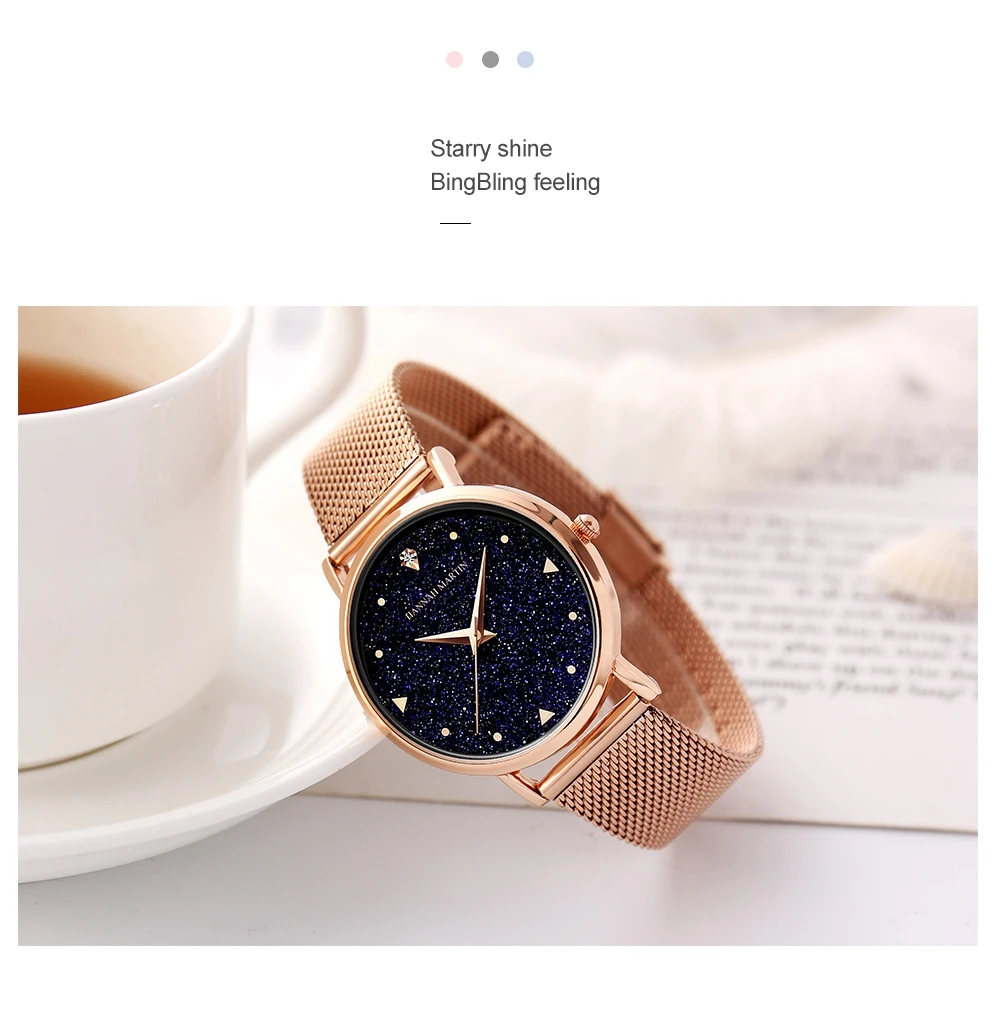 Часы женские кварцевые с японским механизмом, элегантные водонепроницаемые креативные, с ночным миганием, с циферблатом звездного неба, из нержавеющей стали, со стразами