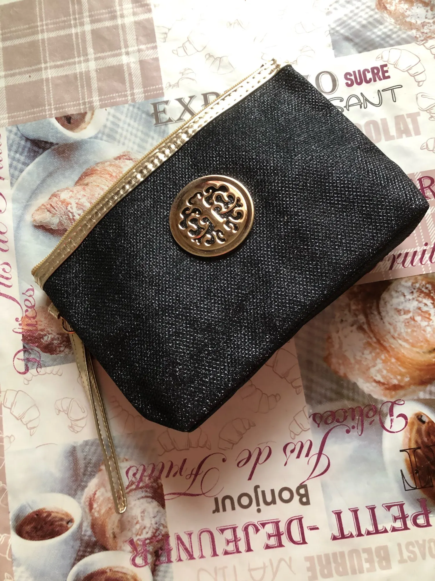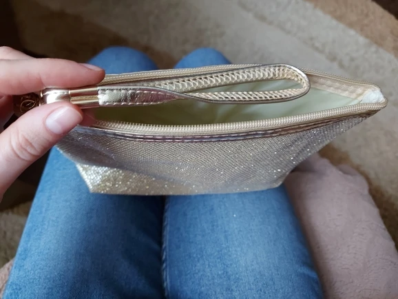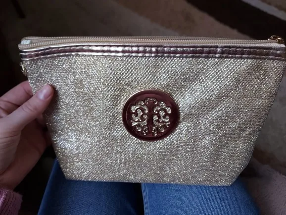 косметичка красивая, вместительная.один минус- немного осыпаются золотые блестки.