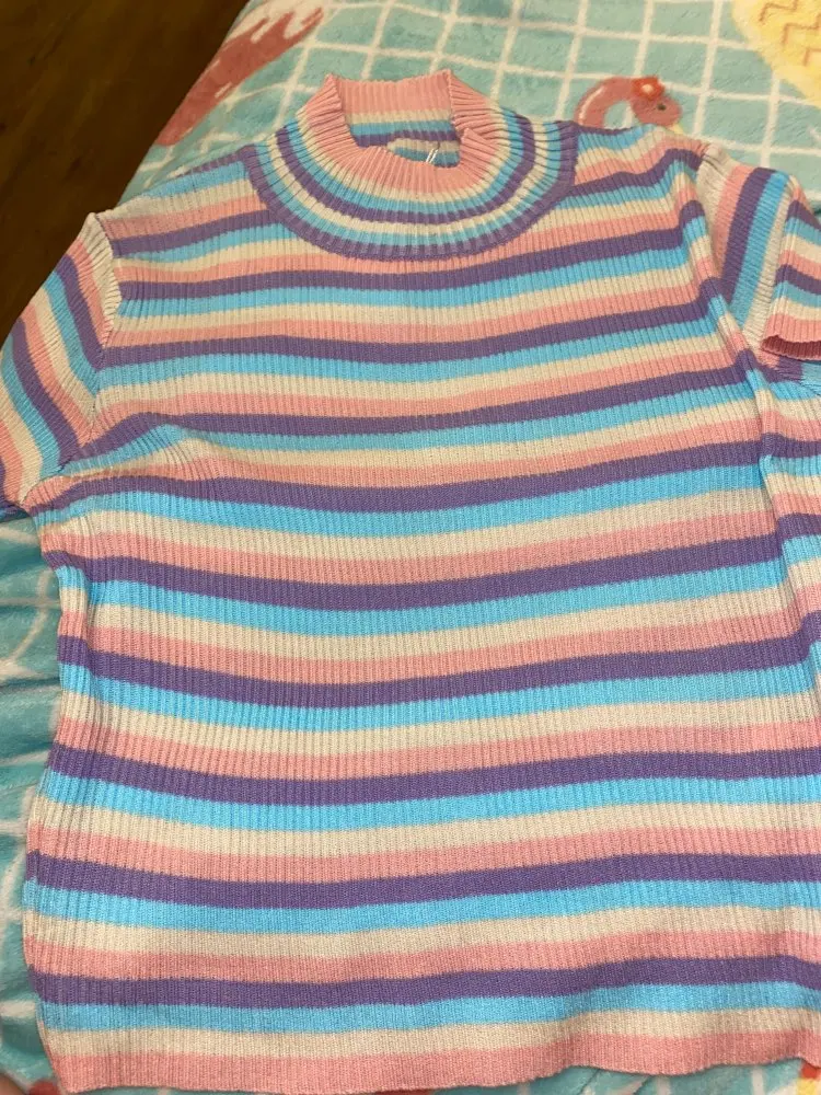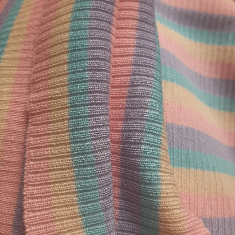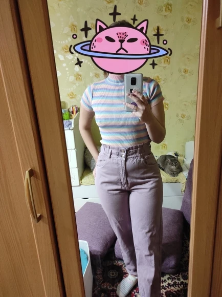 Это красиво! Я очень влюблен в нее, у нее есть действительно красивые цвета, как показано на картинке. У меня есть короткое пальто, поэтому у меня достаточно груди и спины (106 см), но мне все равно, почему я обычно ношу брюки и юбки с высокой талией. Он достаточно эластичный и очень удобный. Прибыл в Испанию через неделю