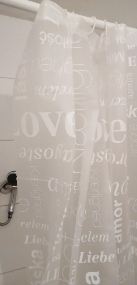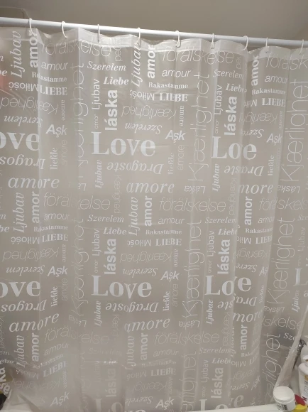 Очень стильная шторка. Меняю раз в полгода, уже 3-ю заказываю. Но постирать ее нельзя, буквы стираются. Но за такую сумму можно и еще заказать. Спасибо продавцу.