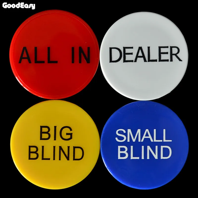 Горячая Распродажа 4 шт.компл. меламиновые круглые пластиковые дилерские монеты, маленький глухой большой глухой дилер, все в Техасе, набор чипов для покера, монеты, пуговицы, игра