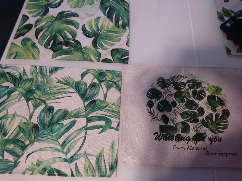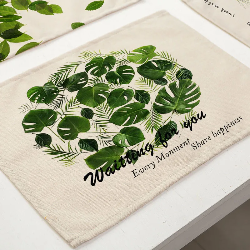 Тропические пальмовые зеленые листья, кухонные коврики, подставка, обеденный, хлопковые и льняные коврики, 42*32 см, домашний декор, MP0001
