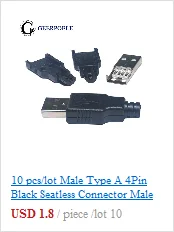 10 шт.лот USB штекер 2.0 тип A 4Pin квадратный USB разъем пластиковый корпус Jack хвост наконечники штекеры DIY