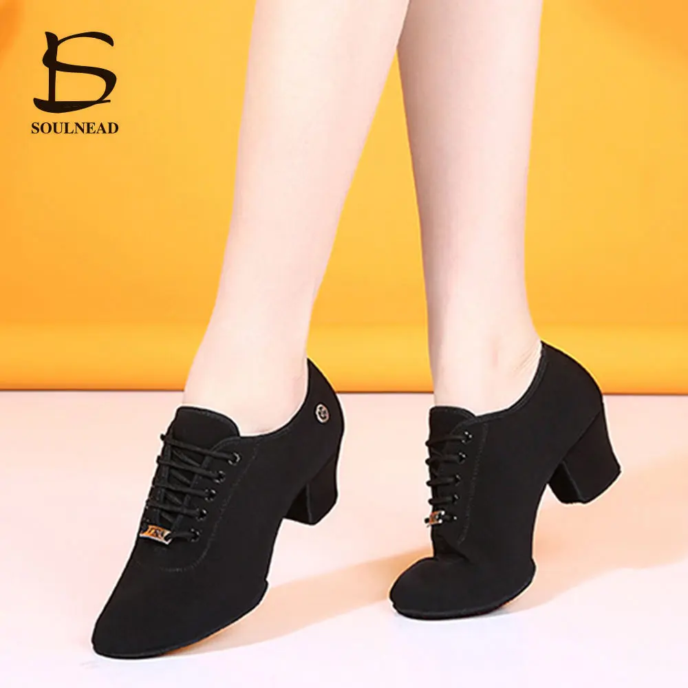 Женская обувь для латинских танцев, бальные туфли с мягкой подошвой, женские танцевальные туфли для танго, джаза, сальсы, на среднем каблуке, женские нескользящие Танцевальные Кроссовки
