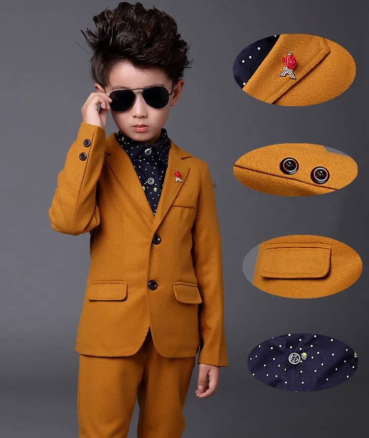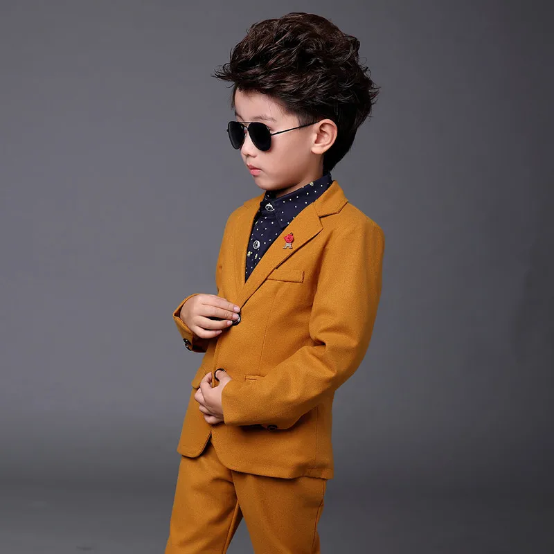 Комплект одежды для мальчиков 2-10 лет, милый джентльменский стиль, однотонный оранжевый топ и штаны, повседневный комплект одежды для детей