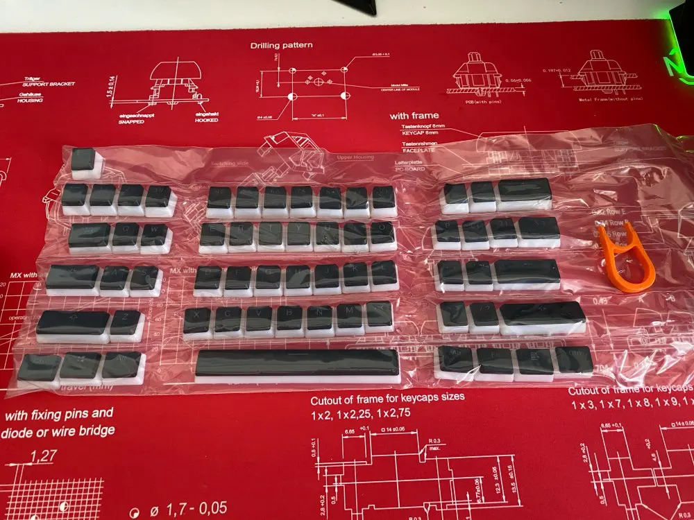 Клавиши выглядят отлично, в комплекте есть Пулер для кейкапов, который не царапает клавиши (металлический), очень приятный пластик на ощупь, и очень приятно эти клавиши подчеркивают подсветку клавиатуры, но есть одно но: нижний ряд клавиш абсолютно не подошел, пробел у меня немного длиннее и клавиши: alt,ctr,win,fn тоже почему то в комплекте немного длиннее чем нужно, но в целом доволен, 1 ряд клавиш не так уж и критично, но упомянуть об этом стоит. Модель клавиатуры: corsair strafe rgb