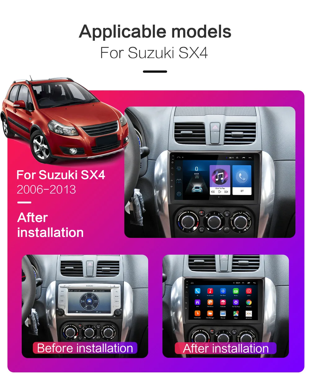 Для Suzuki SX4 2006 2007 2008 2009 2010 2011 2012 2013Для Fiat Sedici 2005 2006 2007 2008 2009 2010 2011 2012 2013 20141. Операционная система Android может установить приложение Google Play store Skype Facebook youTube Twitter и т. Д.2, 4-х ядерный конфигурация включает в себя (Оперативная память + Встроенная память): 1 Гб + 16 ГБ/2 ГБ + 16 ГБ/2G + 32G [дополнительно]3, 8-ядерный конфигурация включает в себя (Оперативная память + Встроенная память): 7216-2G + 32G/7216-4G + 64G/7216-6G + 128G/7216-8G + 128G/ 4G-SIM-5716-2G + 32G/4G-SIM-5716-4G + 64G/4G-SIM-5716-6G + 128G/4G-SIM-5716-8G + 128G [опционально]4, 4-ядерный содержит: версия: Android 8,1Разрешение: HD 2.5D,1024*600; Не поддерживает функцию AM и RDS;5, 8-ядерный содержит: версия: Android 10;Разрешение: HD 2.5D,1280*7207216-WIFI версия: Поддержка DSP, FM, RDS ,16EQ, HIFI, сплит-экран, двойная запись спереди и сзади и 360 панорамных функций камеры; Не поддерживает видеовыход;Ядер заключаются в следующем: 4-х ядерный Процессор и 4-х ядерный графический процессор4G-SIM-5716-WIFI версия: 8-ядерный, поддерживает DSP, FM, RDS, Hi-Fi, Разделение экран, спереди и сзади двойная запись и 360 панорамная камера функции; Не поддерживает видео выход;6. Поддержка: радиостанция, Bluetooth Вызов, Bluetooth музыка, управление рулевым колесом, встроенный WiFi, MP3, видео музыка (MPG, AVI), навигация, видеовыход, зеркальная связь, USB 4G LTE WIFI ключ и другие функции; Поддержка выбора логотипа автомобиля; Sfactory пароль: 8888