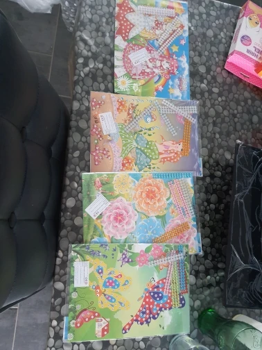 Heel leuk. Alleen is het voor een kind moeilijk om de steentjes eraf te krijgen en te plakken. En er zit er ook geen een teveel bij