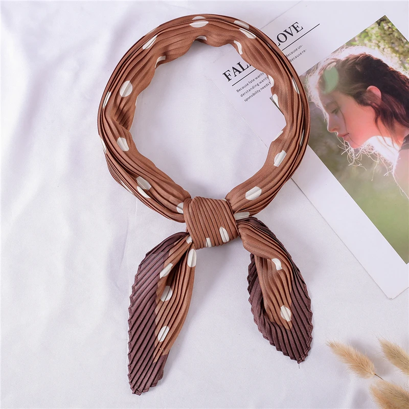 Женский маленький шелковый шарф на шею, женские шарфы в горошек, плиссированные шарфы для дам, платок с модным принтом