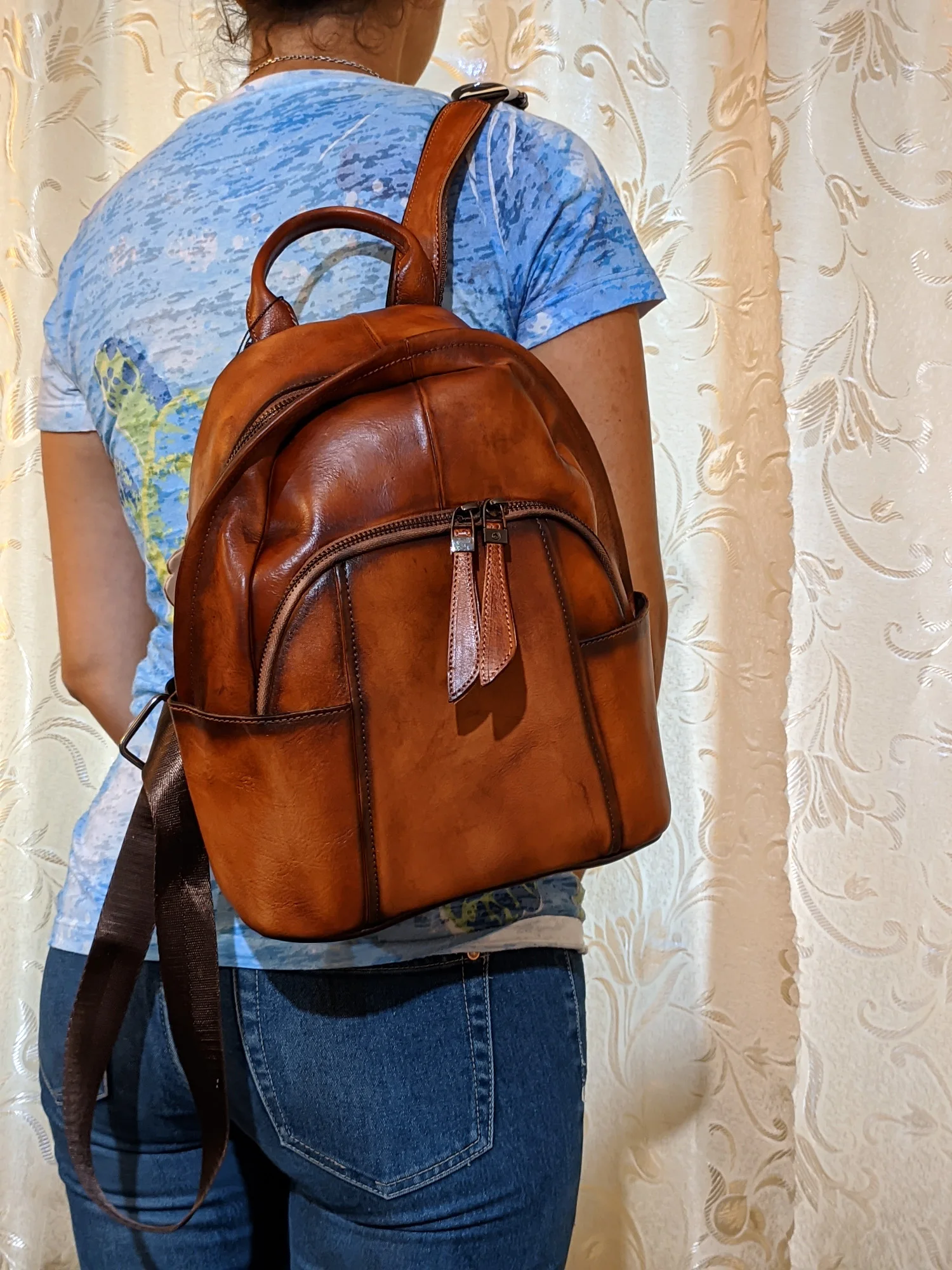 Женский рюкзак из натуральной кожи, винтажный маленький ранец из во...