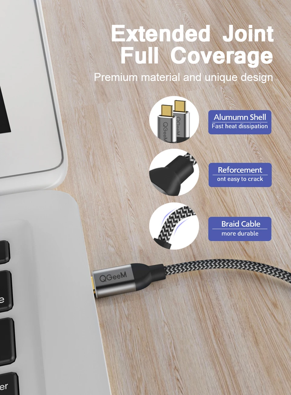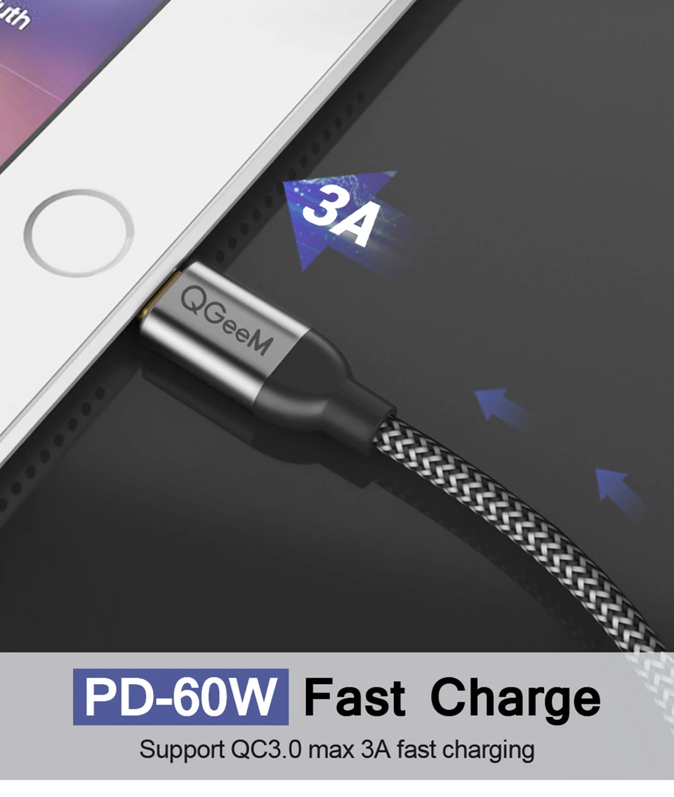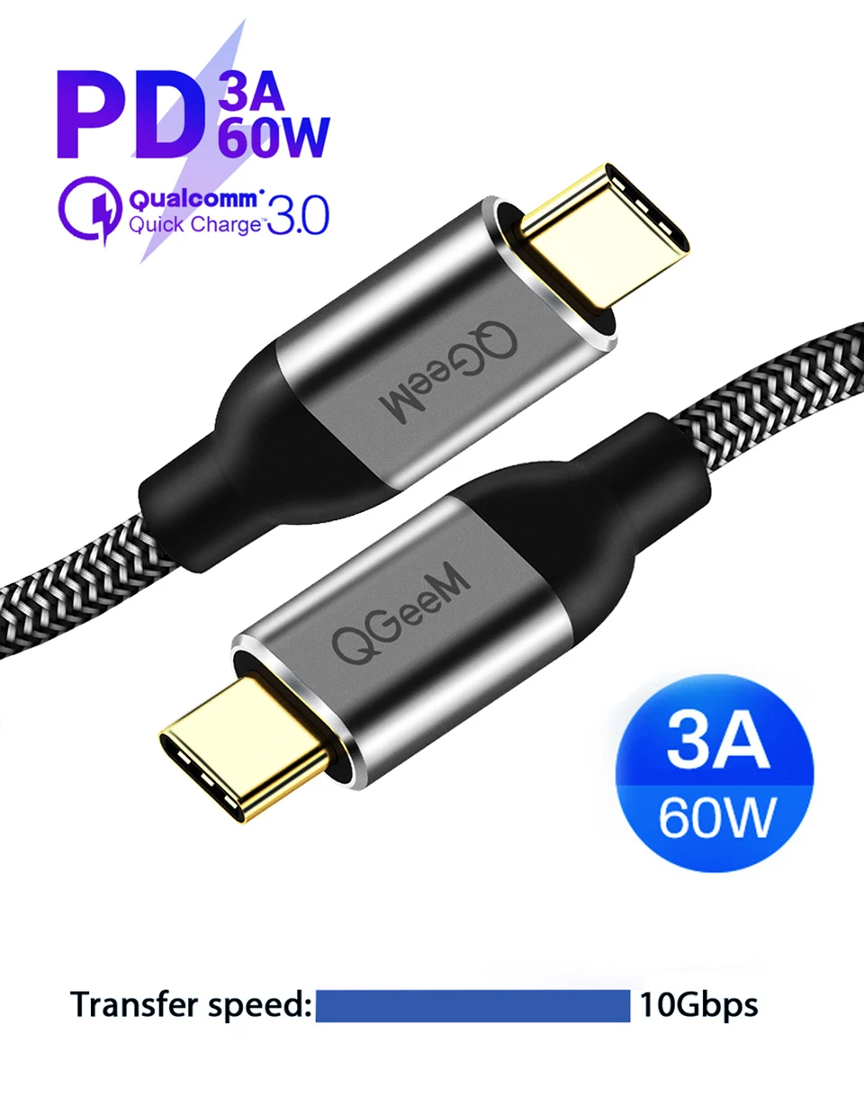 Кабель USB-C QGeeM, в нейлоновой оплетке, PD 60Вт, USB 3.1, для Samsung S9, S8, MacBook Pro