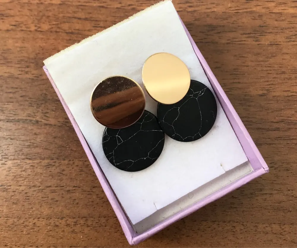 Посылка шла долго, сережки классные, тяжелые, но система закрывание на одной сережки не работала, поэтому сломалась (