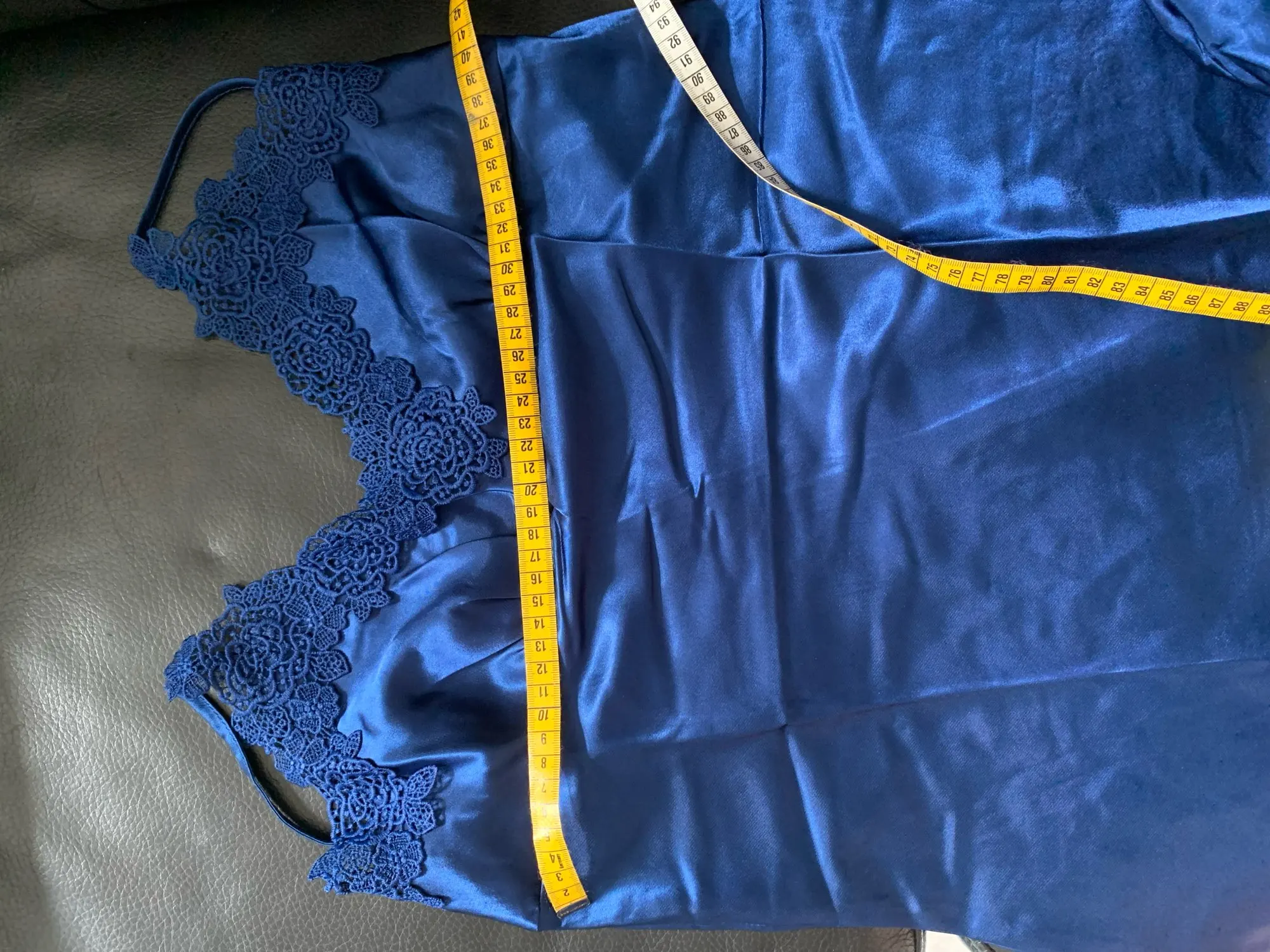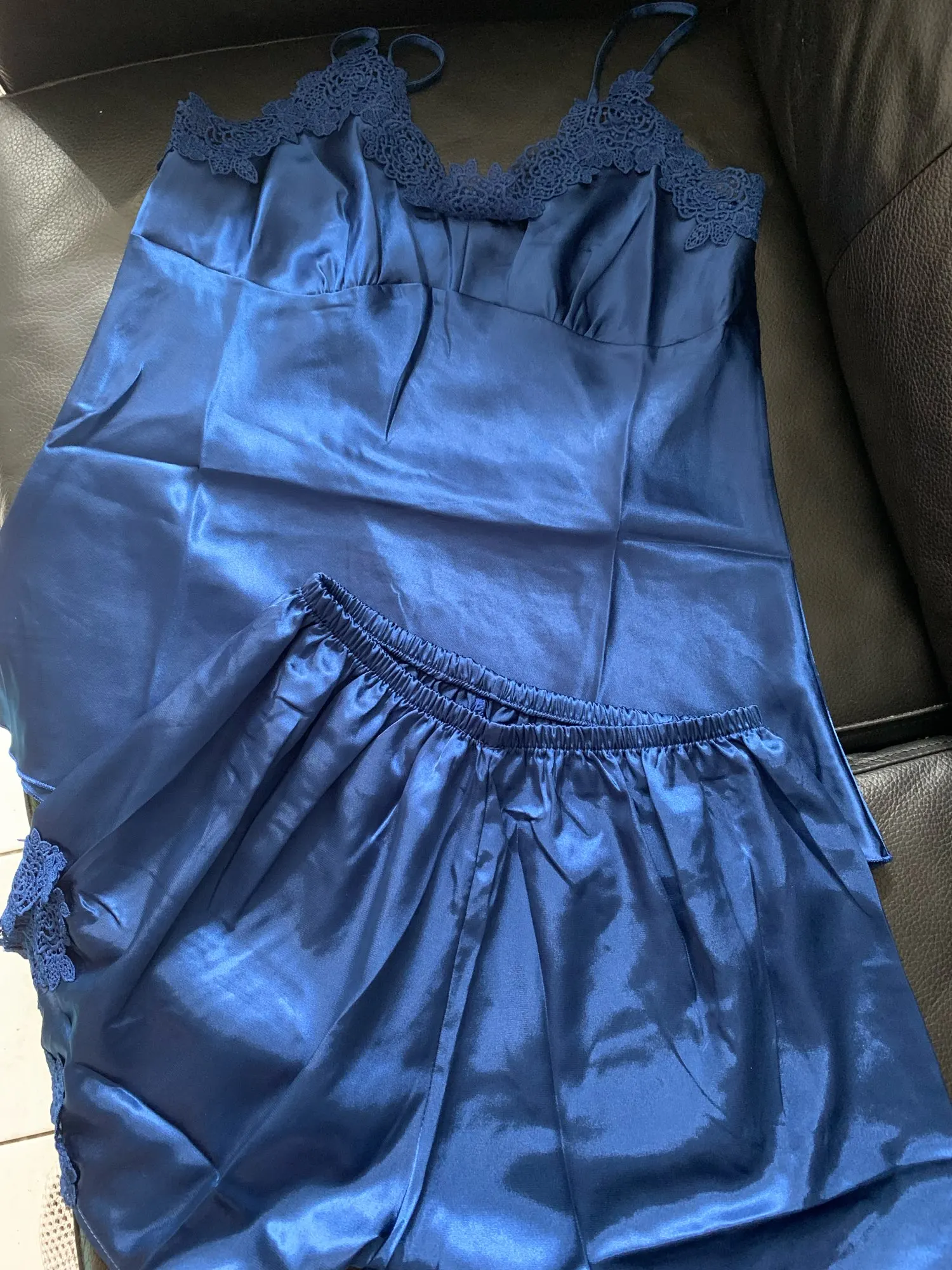couleur beaucoup plus claire et vive que sur les photos. peignoir mal taillé : coutures très serrées aux manches qui le rendent peu pratique, pantalon avec une coupe bizarre.