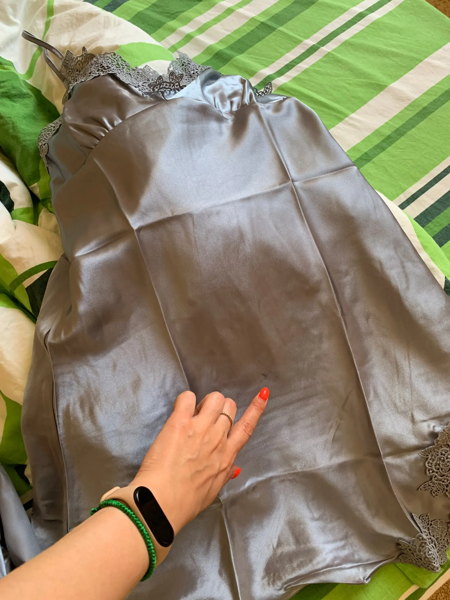 мой рост 174 и по длине прям супер. думаю халат может быть даже длинноват для девочек ниже 170. ткань очень приятная, плотная, но если на свет смотреть, слегка просвечивает. для ночнушки что надо, халат хорошо держится тоже. мои параметры 85-68-99, мне размер идеально подошёл. если у вас грудь больше 4 размера, берите побольше размер, чем хл. доставка быстрая, рекомендую!!