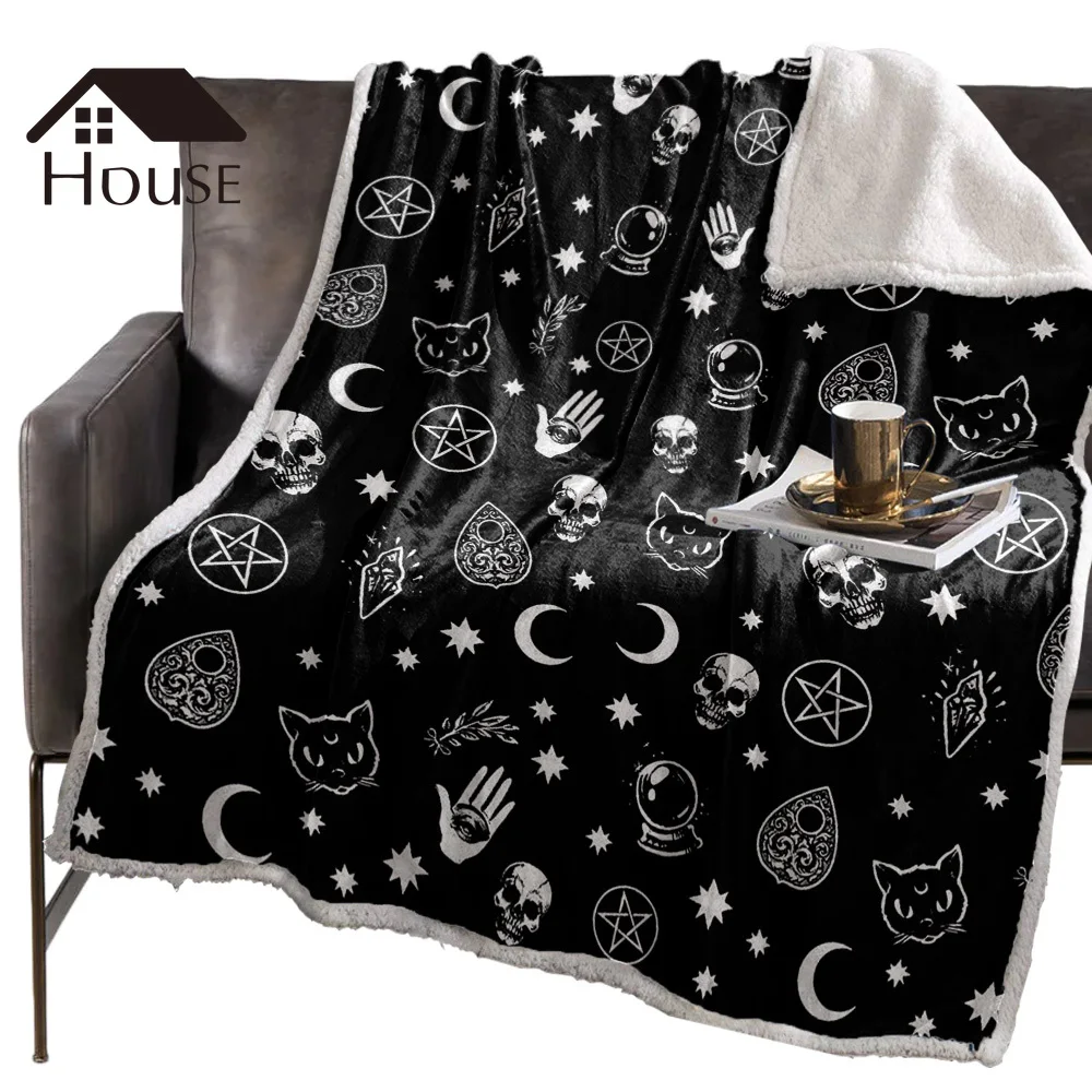 Высококачественное фланелевое одеяло с черным черепом и котом, мягкое теплое одеяло из микрофибры для путешествий, под заказ